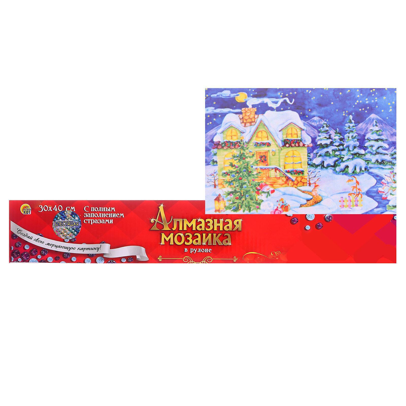 Алмазная мозаика, 30×40 см, без подрамника, с полным заполнением, 35 цв. «Заснеженый дом у ручья»