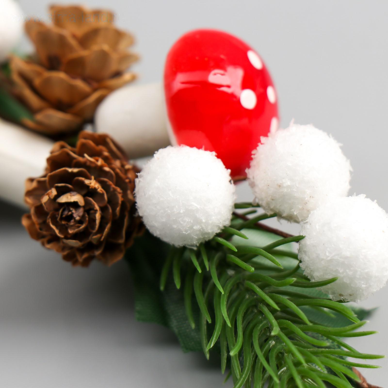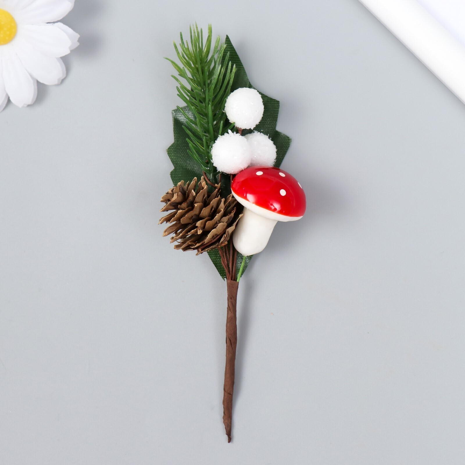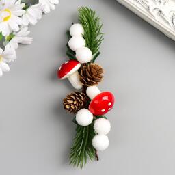 Декор для творчества "Веточка ели со снегом и шишкой" 13 см