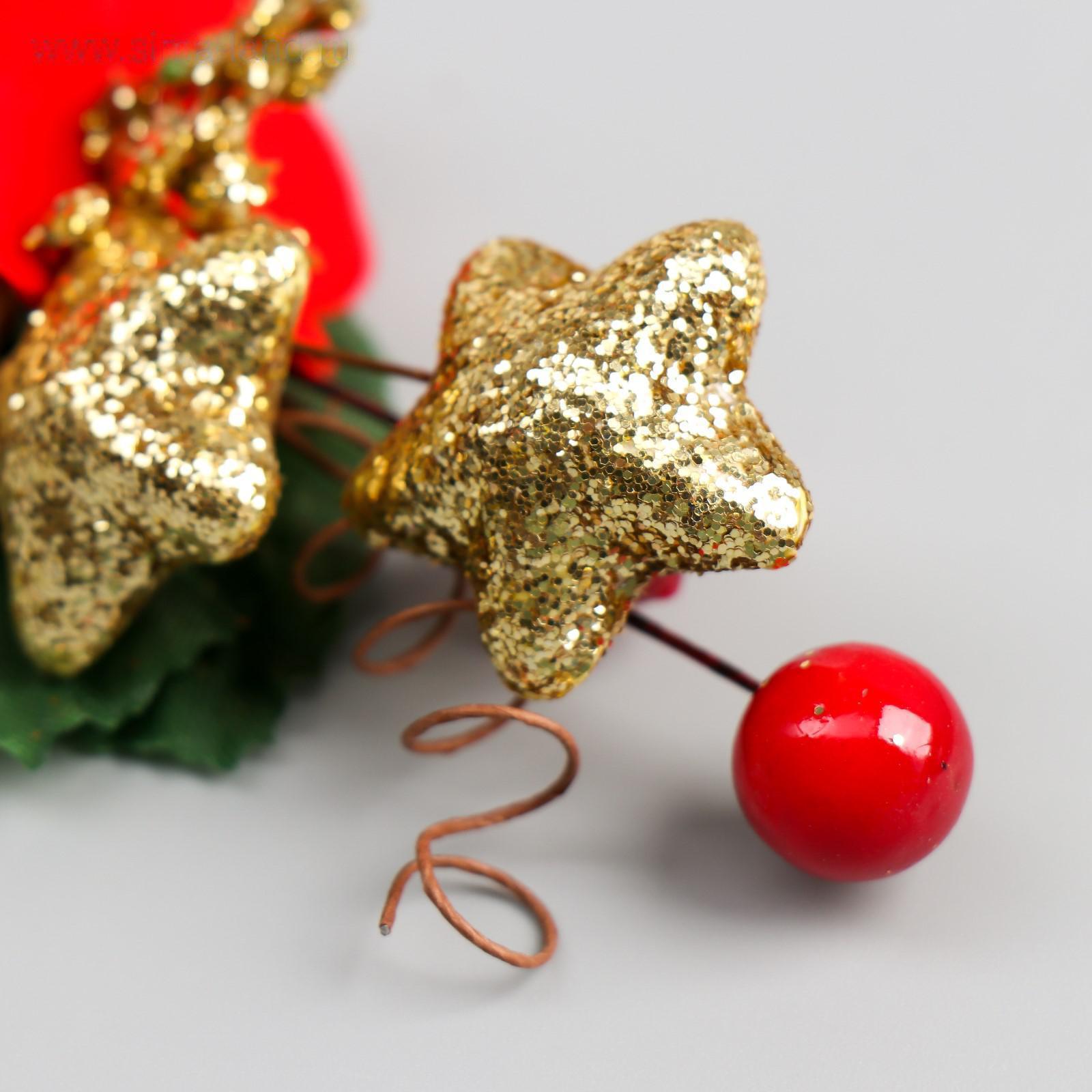 Декор для творчества "Букетик с красным цветком, звездой и яблочком" 11,5 см