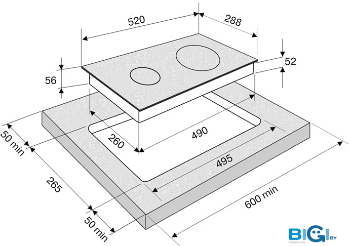 • Подробная информация о конфорках Дальняя: 210 мм * 2 кВт; Ближняя: 160 мм * 1,5 кВт