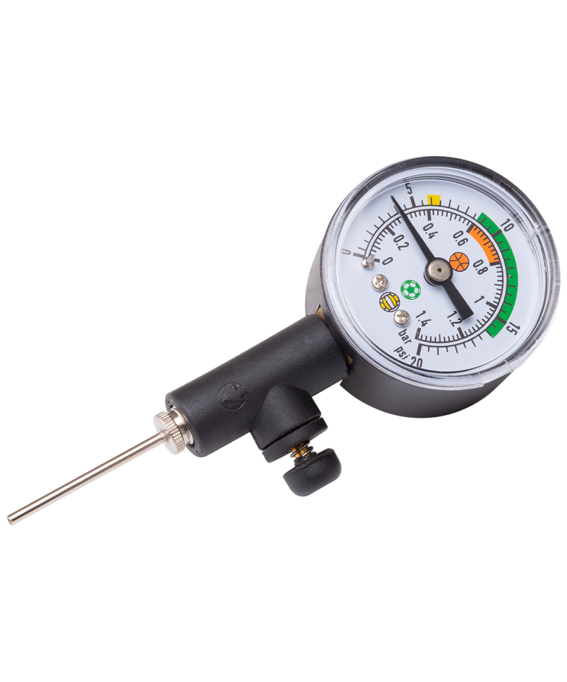 Удобный и компактный механический манометр Jogel для визуального контроля давления в мячах. В комплекте игла. Подходит для футбольного, волейбольного, баскетбольного мячей. Шкала измерения в барах. Характеристики: Материал: пластик Габариты, см: 10,5х2,5х13 Вес, г: 55