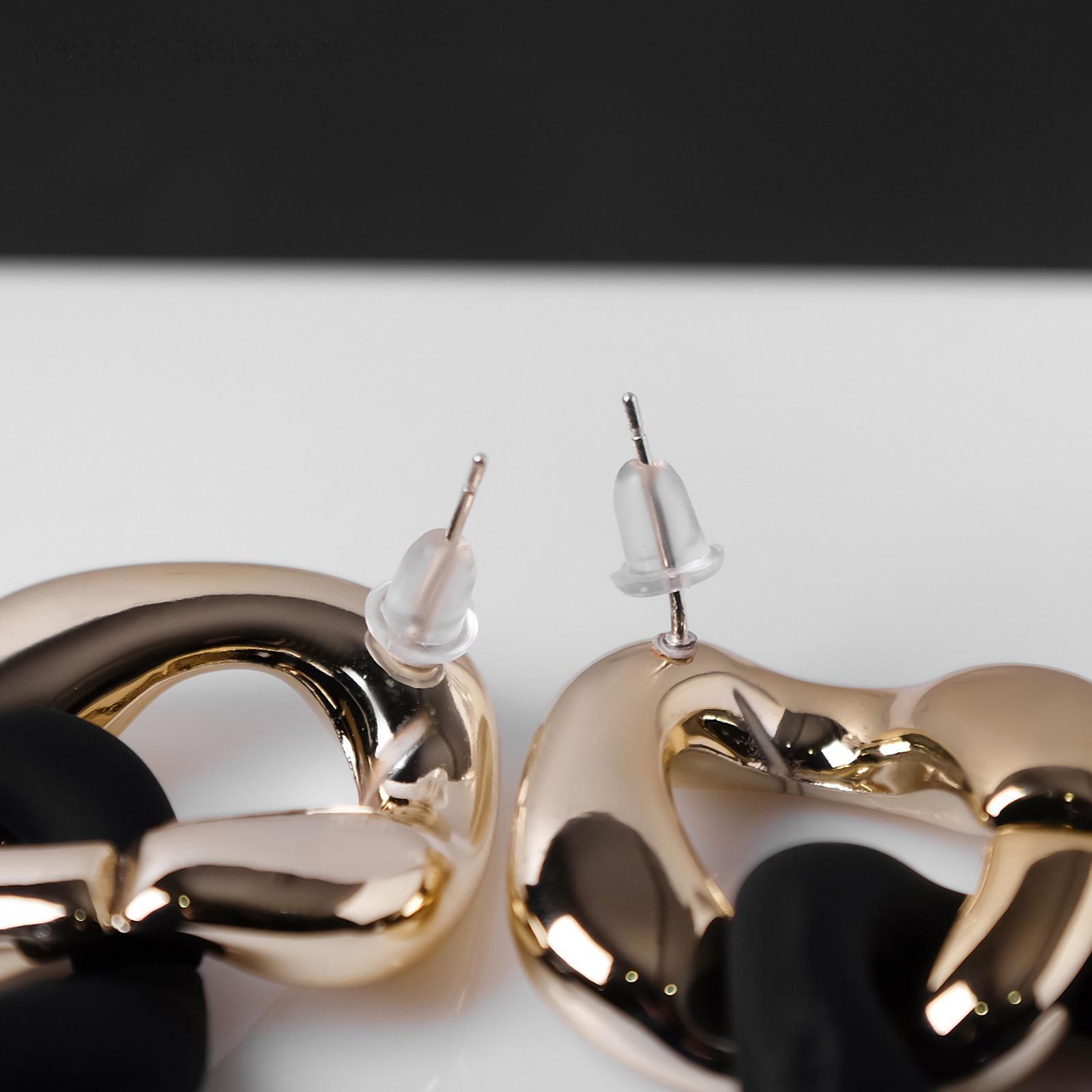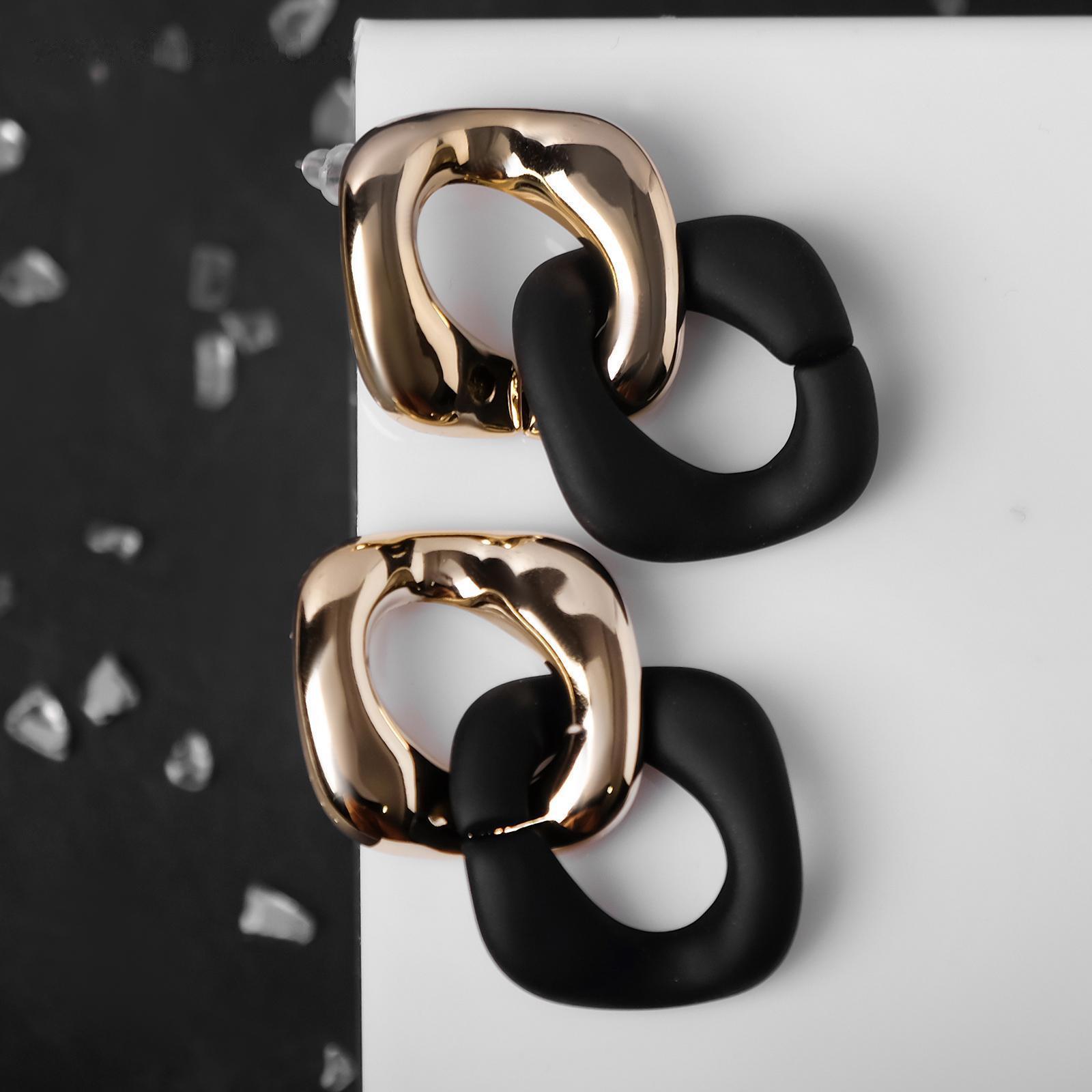 Серьги металл "Цепь" диагональ, 2 полых ромба, цвет золотисто-чёрный