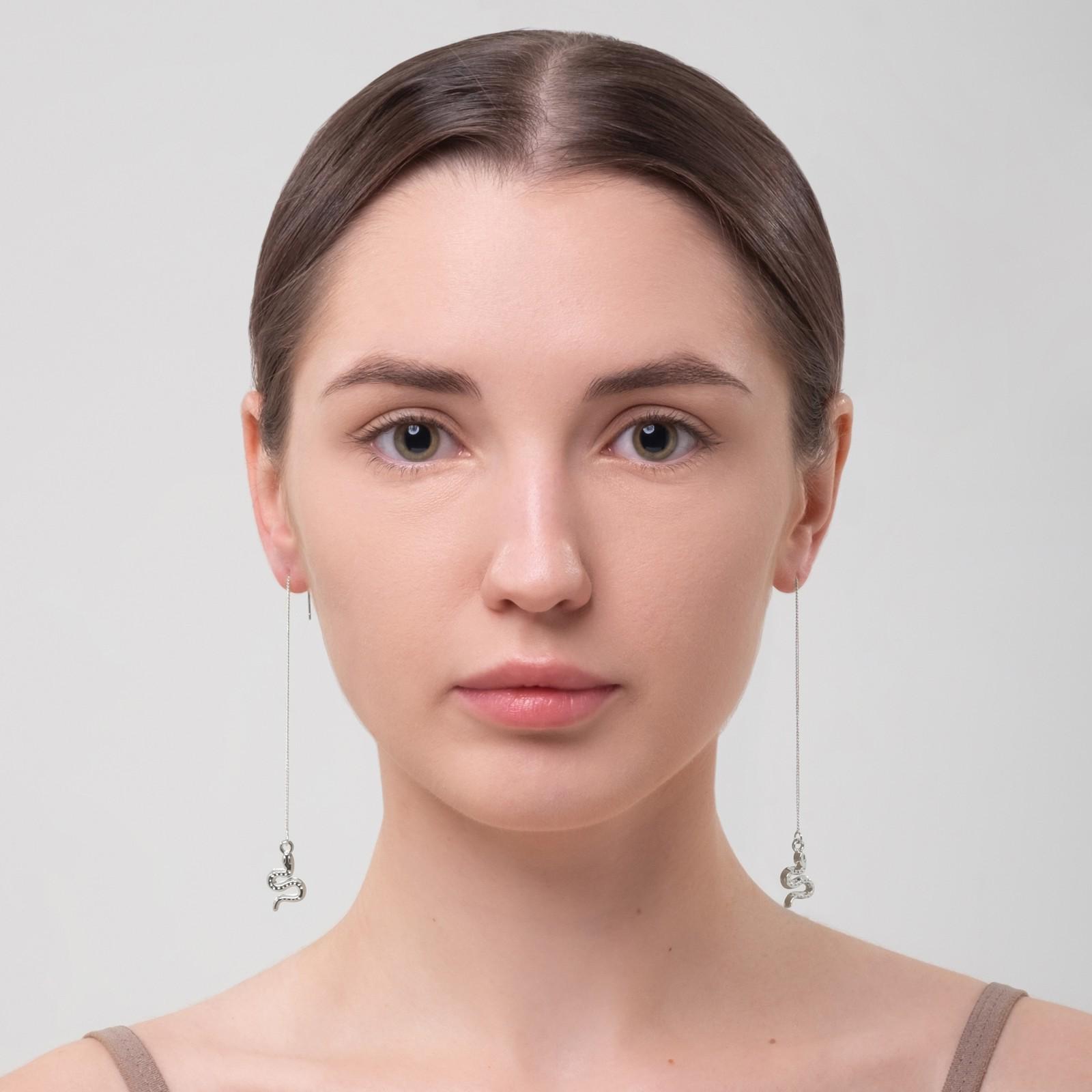 Серьги висячие "Цепочки" змейки, цвет серебро