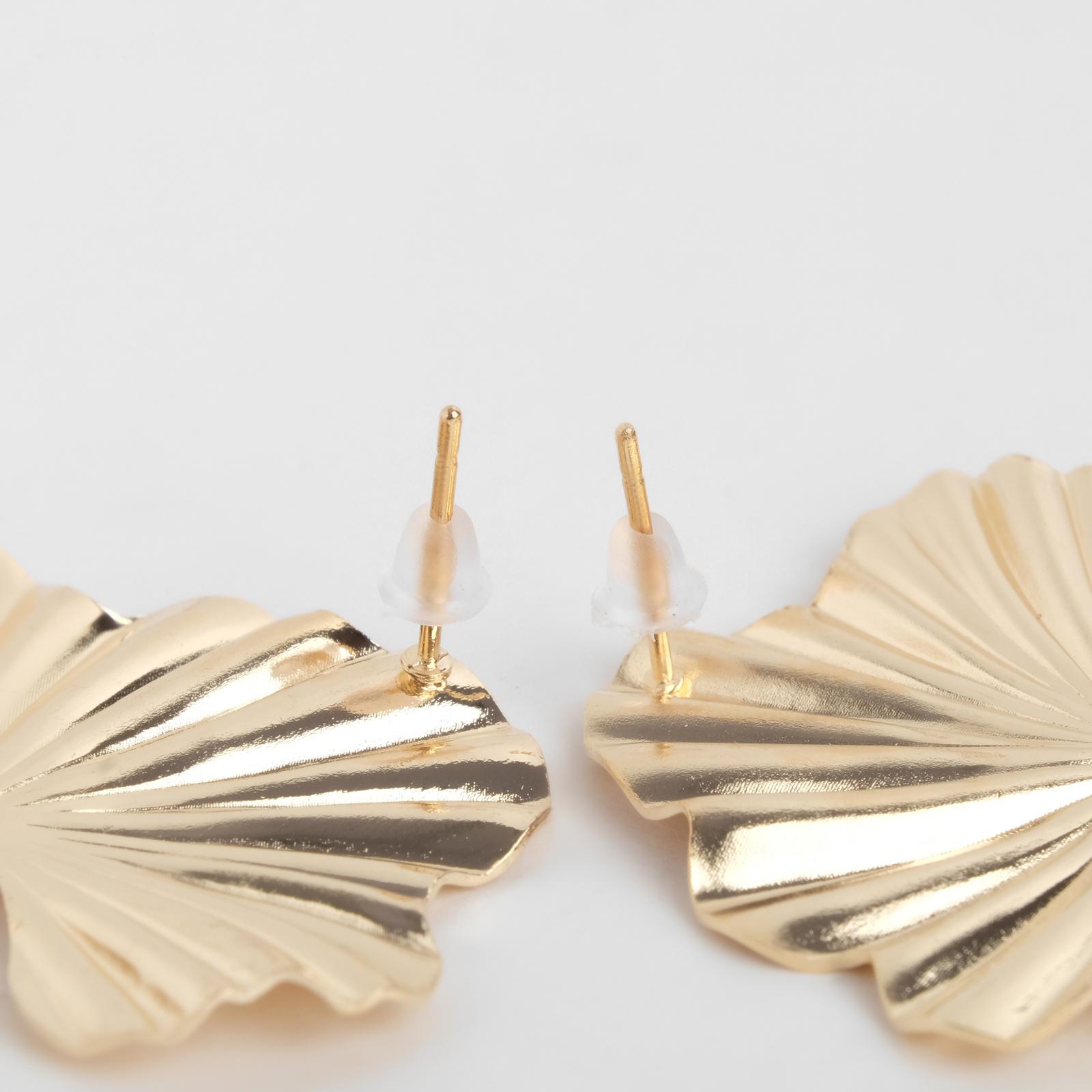 Серьги металл "Атмосфера" сжатые цветы, цвет золото