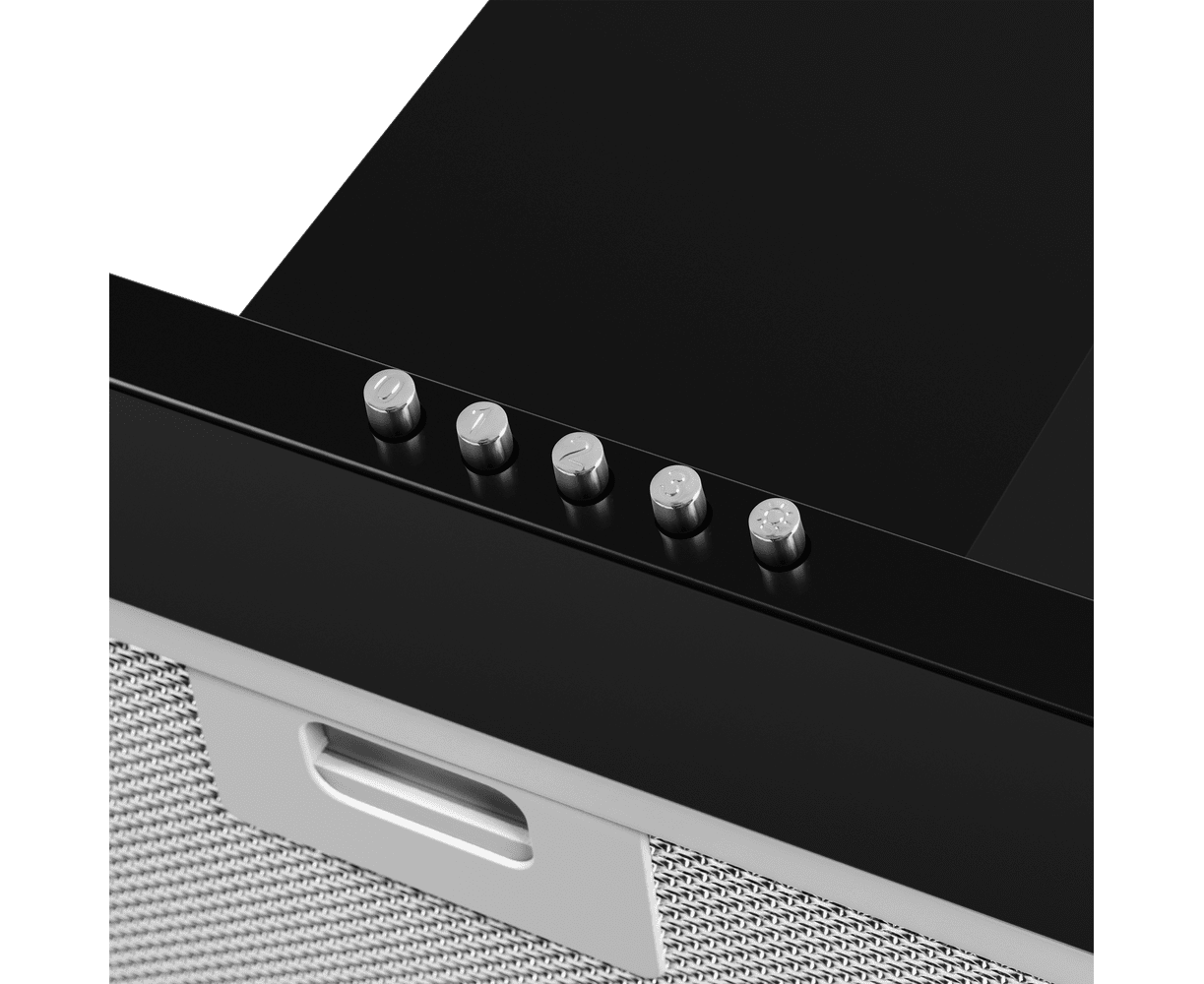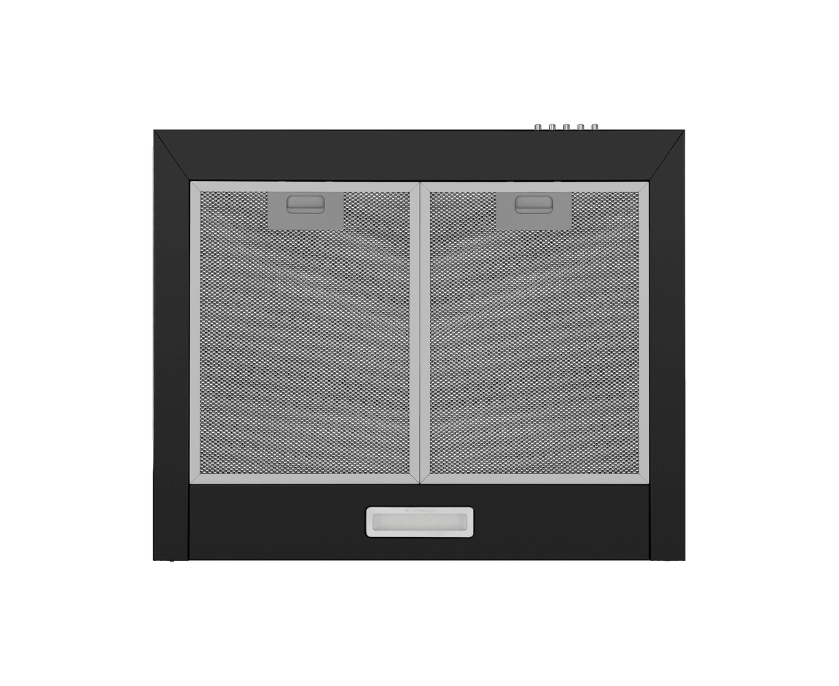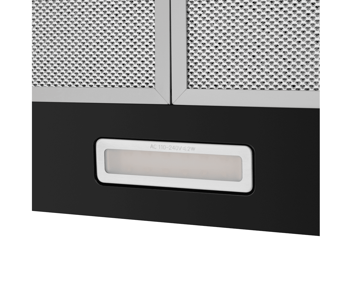 Вытяжка выполнена из нержавеющей стали с эмалевым покрытием черного цвета. Большая площадь рабочей зоны, состоящей из двух многослойных жироулавливающих фильтров, позволяет эффективно захватывать загрязненный воздух на кухне большой площади (до 20 кв.м). Фильтры легко снимаются и в случае необходимости очистки полностью разбираются.