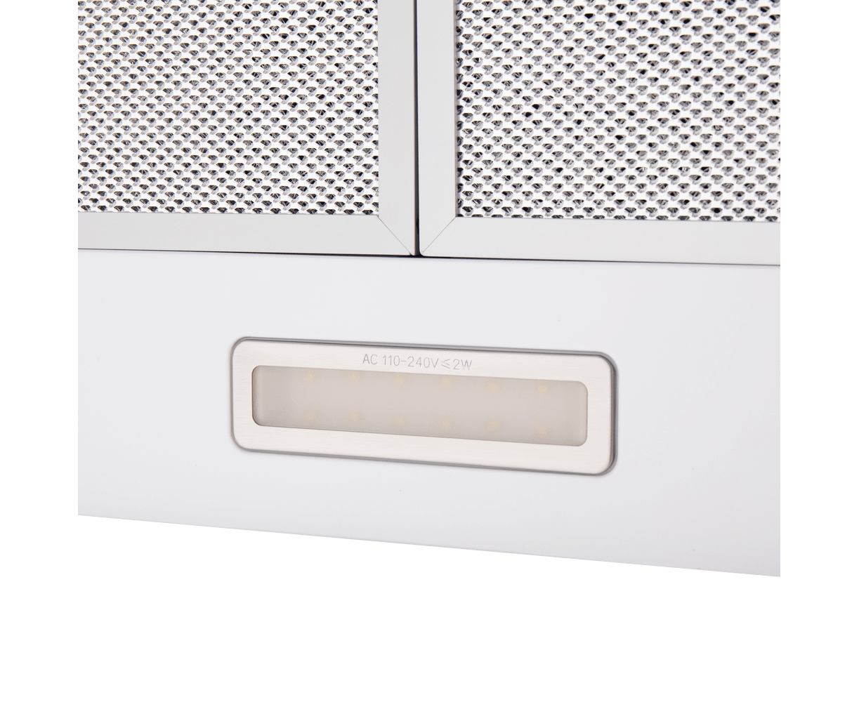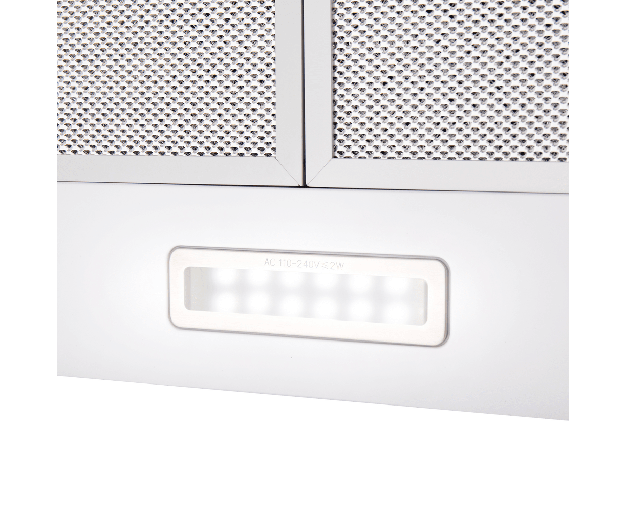 Кнопочная система управления вытяжки, находящаяся на правой части фронтальной панели, позволяет выбрать один их 3-х режимов работы и включить освещение. Для подсветки варочной поверхности используется 1 светодиодный источник мощностью 2 Вт.