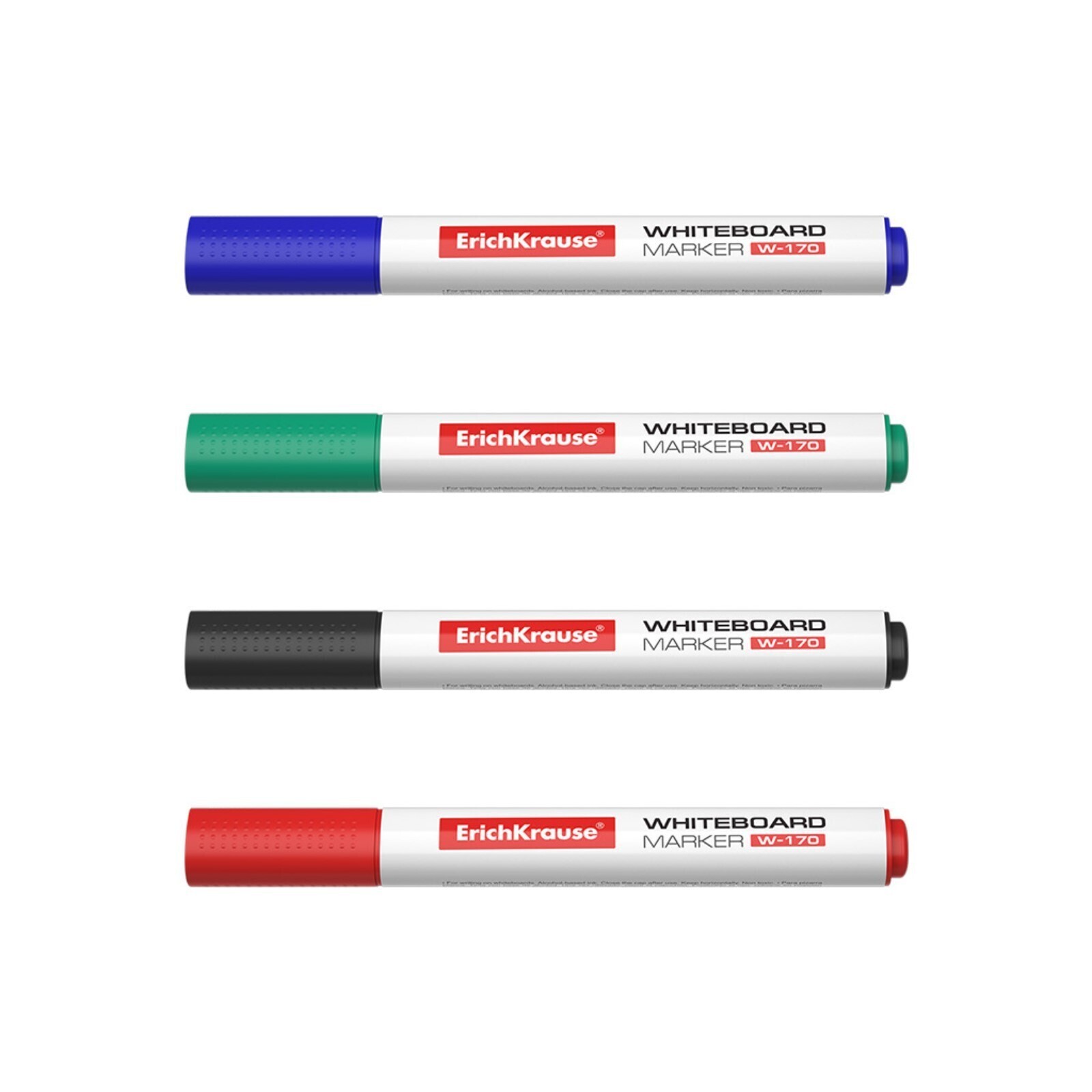Набор маркеров для досок ErichKrause W-170, 4 штуки, 2.0 мм, чернила на спиртовой основе, чёрный, синий, красный, зелёный