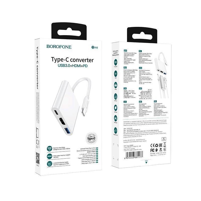 Переходник конвертер borofone DH4 type-C - USB3.0+HDMI+PD белый