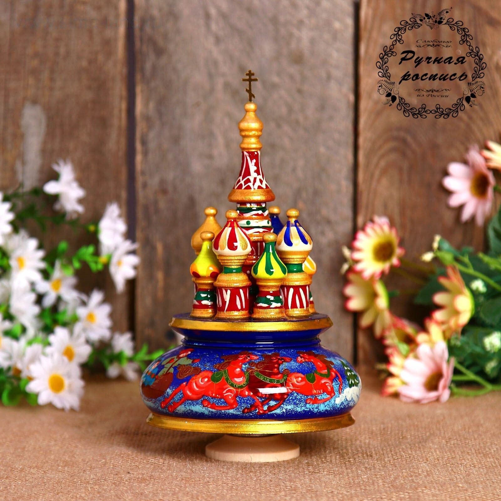 Сувенир музыкальный "Храм.Тройка", 19х15,5 см, синяя