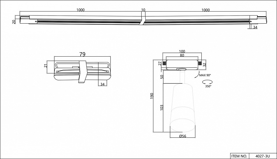 • В комплект входит 3 спота, шинопровод (2х1м), коннектор