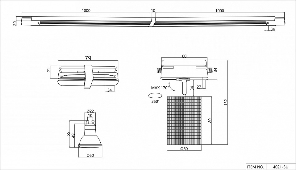 • В комплект входит 3 спота, шинопровод (2х1м), коннектор