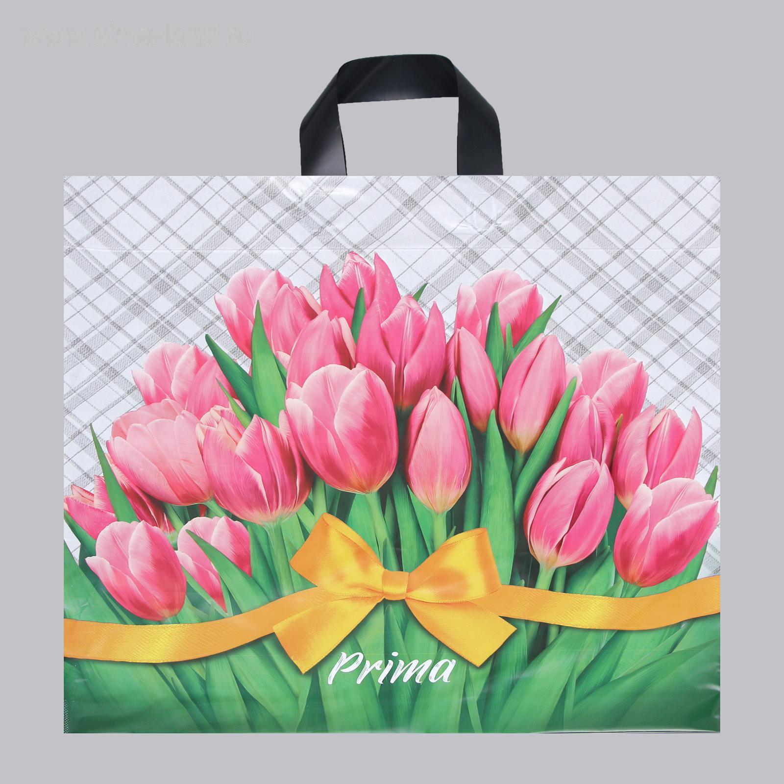 Пакет полиэтиленовый с петлевой ручкой, прочный с оригинальным рисунком. Преимущества: