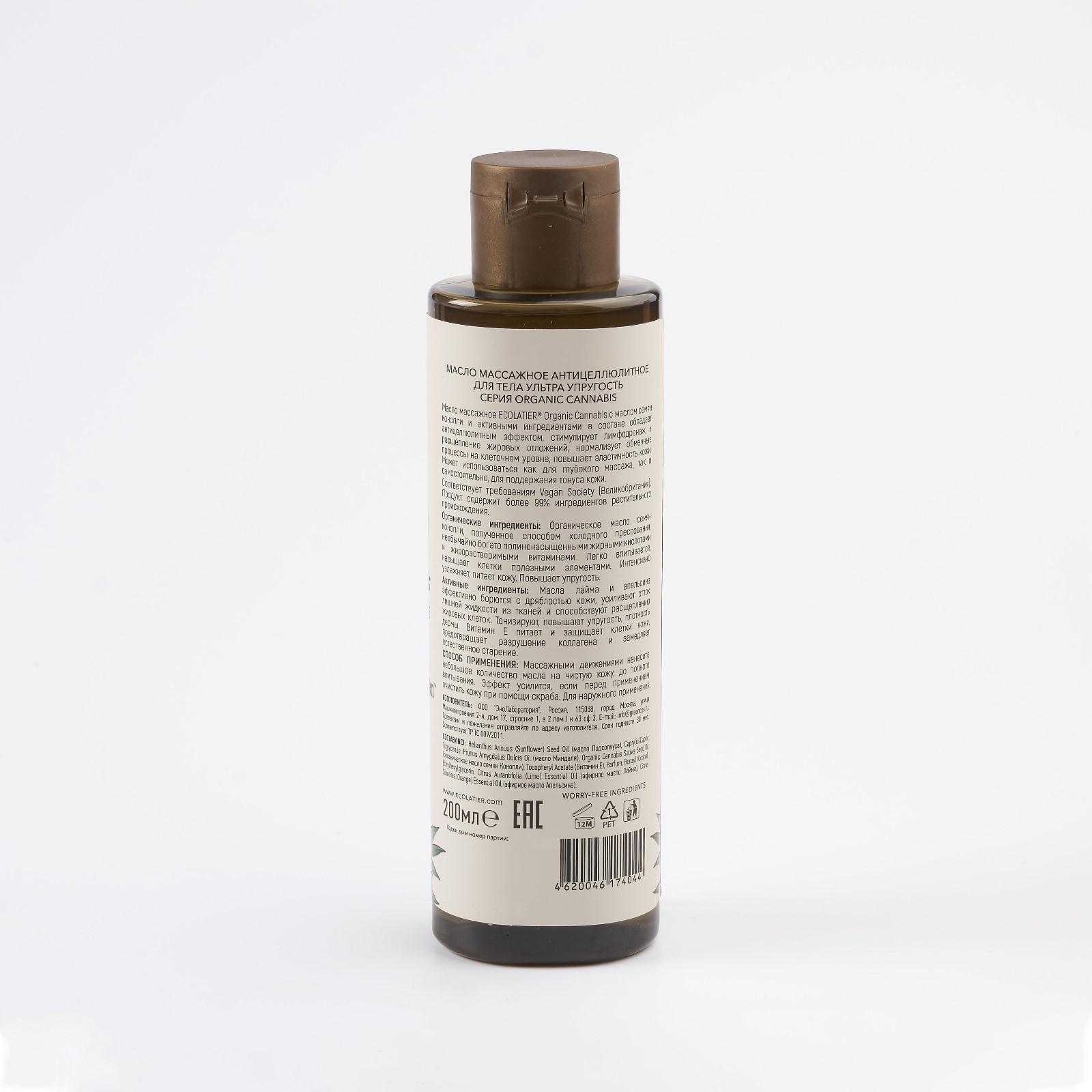 Масло массажное антицеллюлитное для тела Ecolatier Green «Ультра упругость», 200 мл