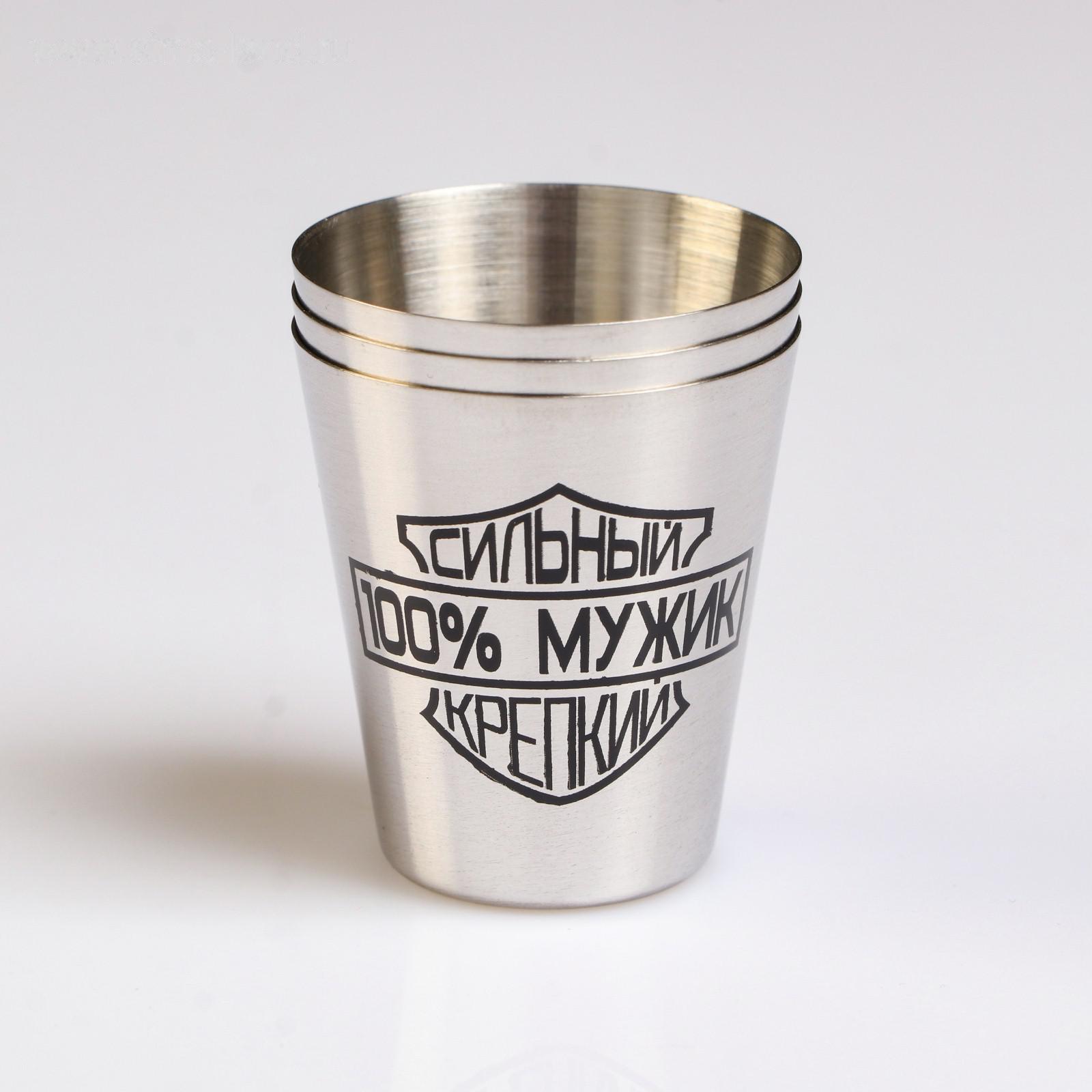 Набор стопок, серия: 23 Февраля,"Сильный,100% мужик,крепкий", 3 шт х 30 мл, 4 х 3.5 см