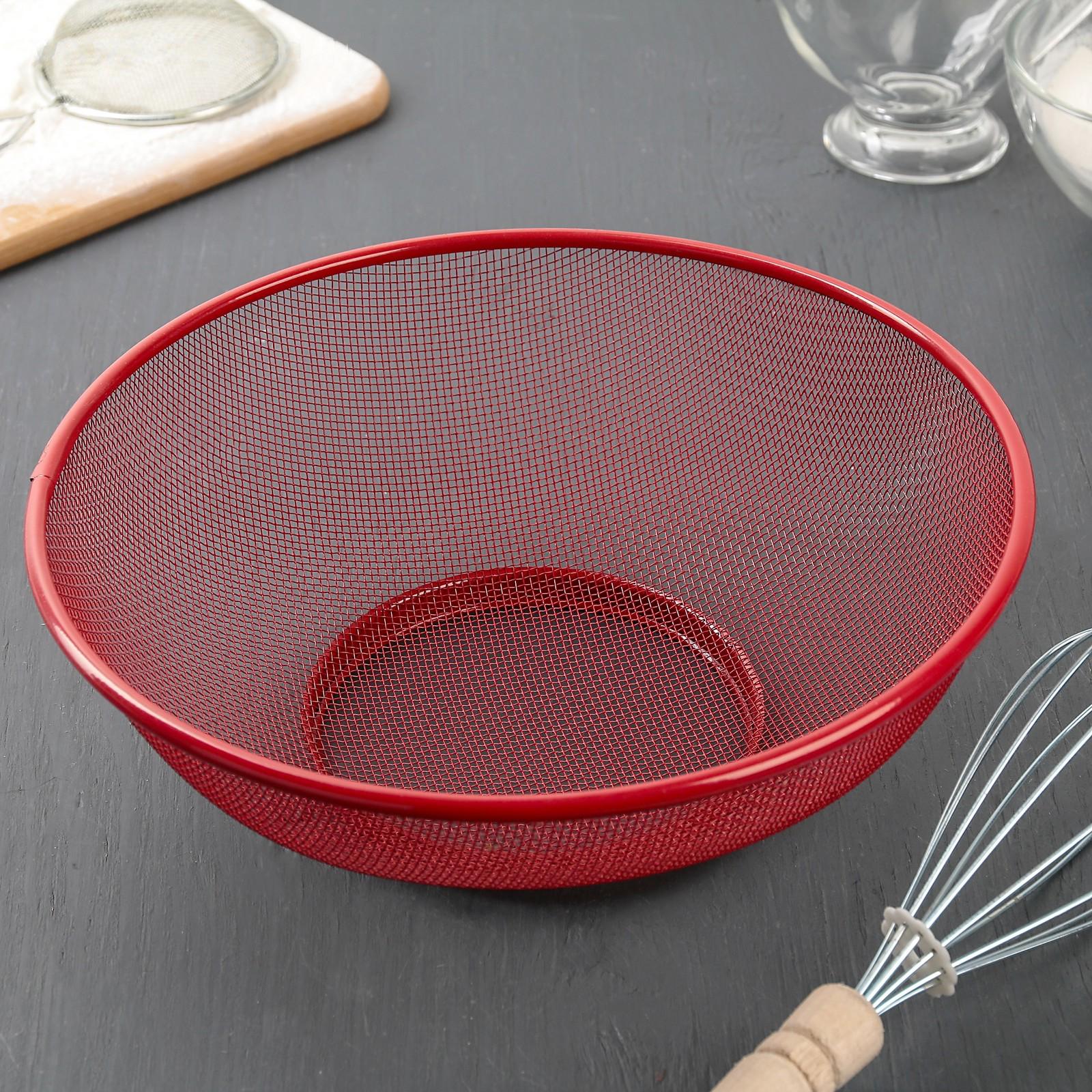Прочная металлическая сетка поможет избавиться от крупных инородных тел и тщательно промыть содержимое. Яркие цвета делают изделие привлекательным, а прочный металлический ободок гарантирует прочность конструкции и защищает её от деформации.