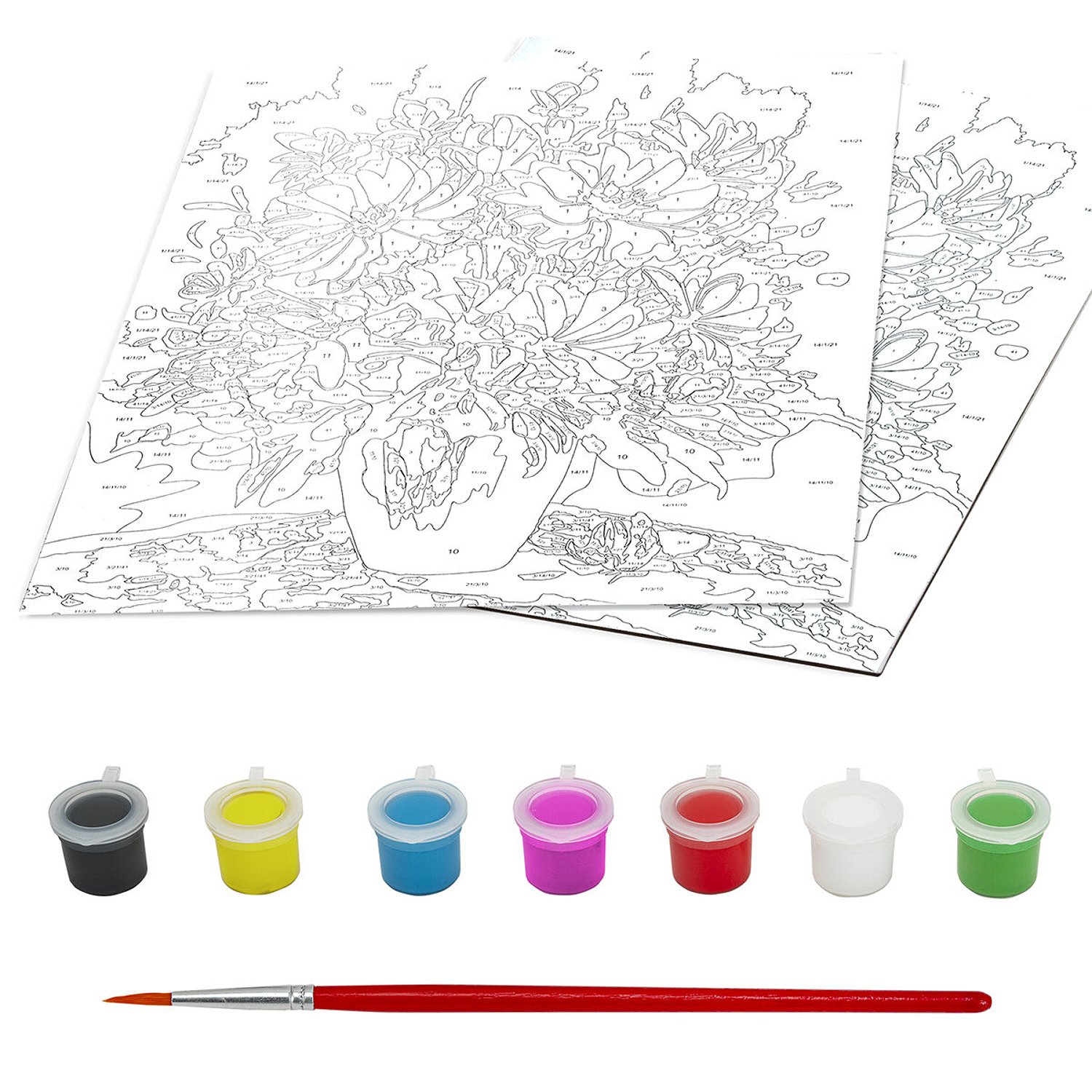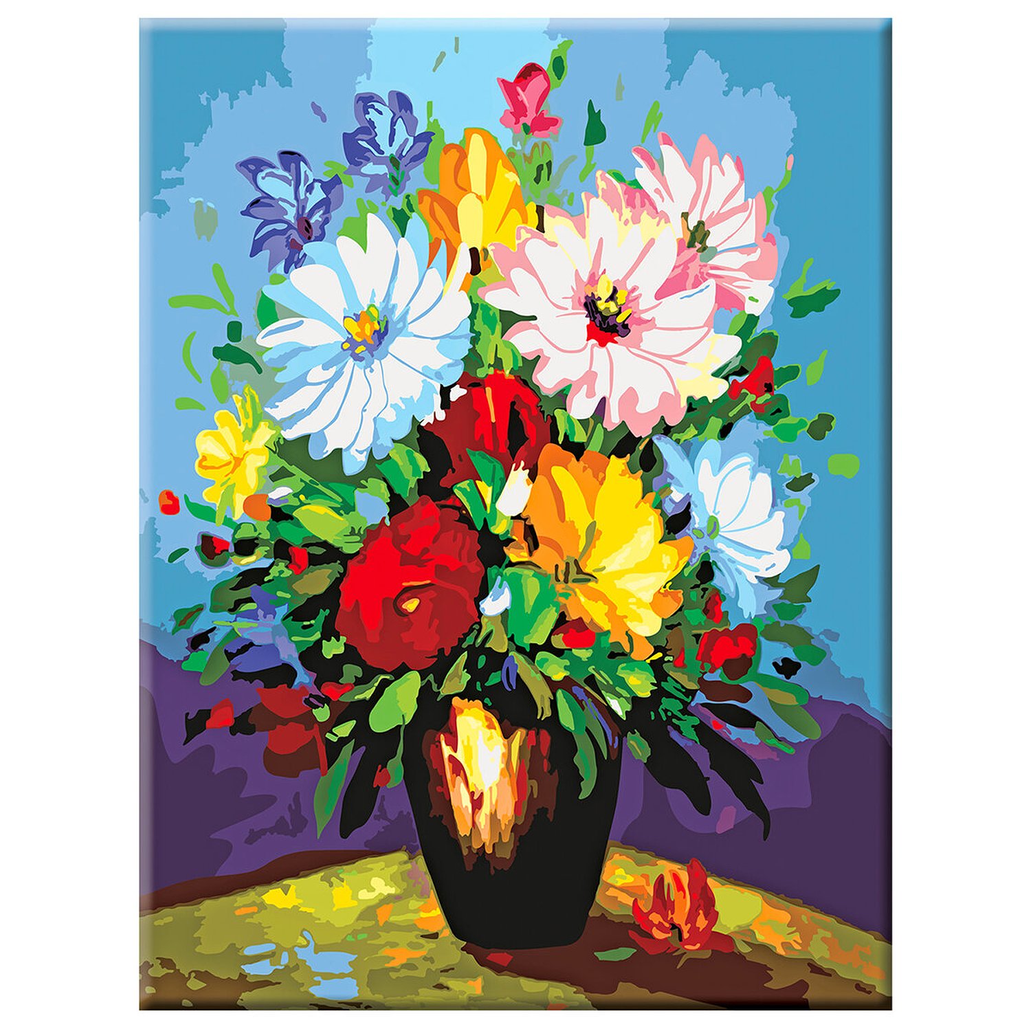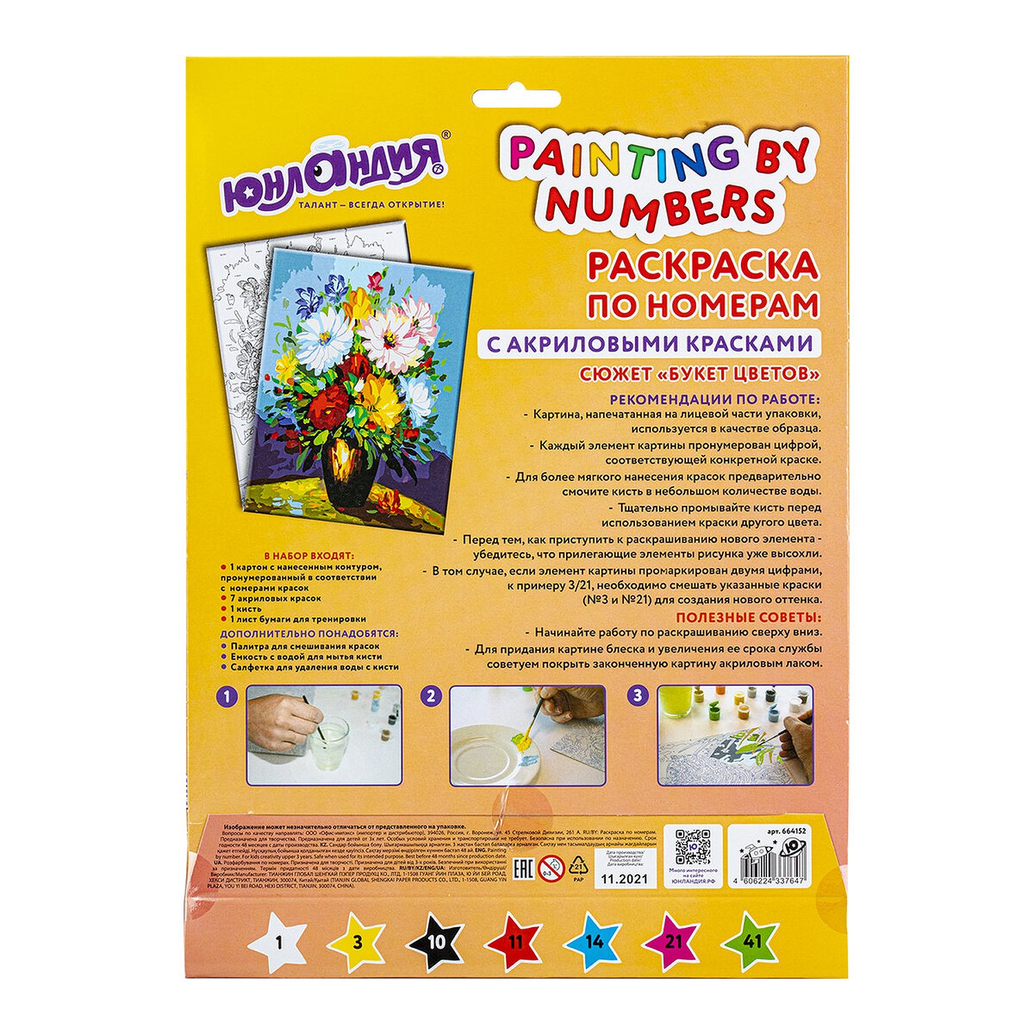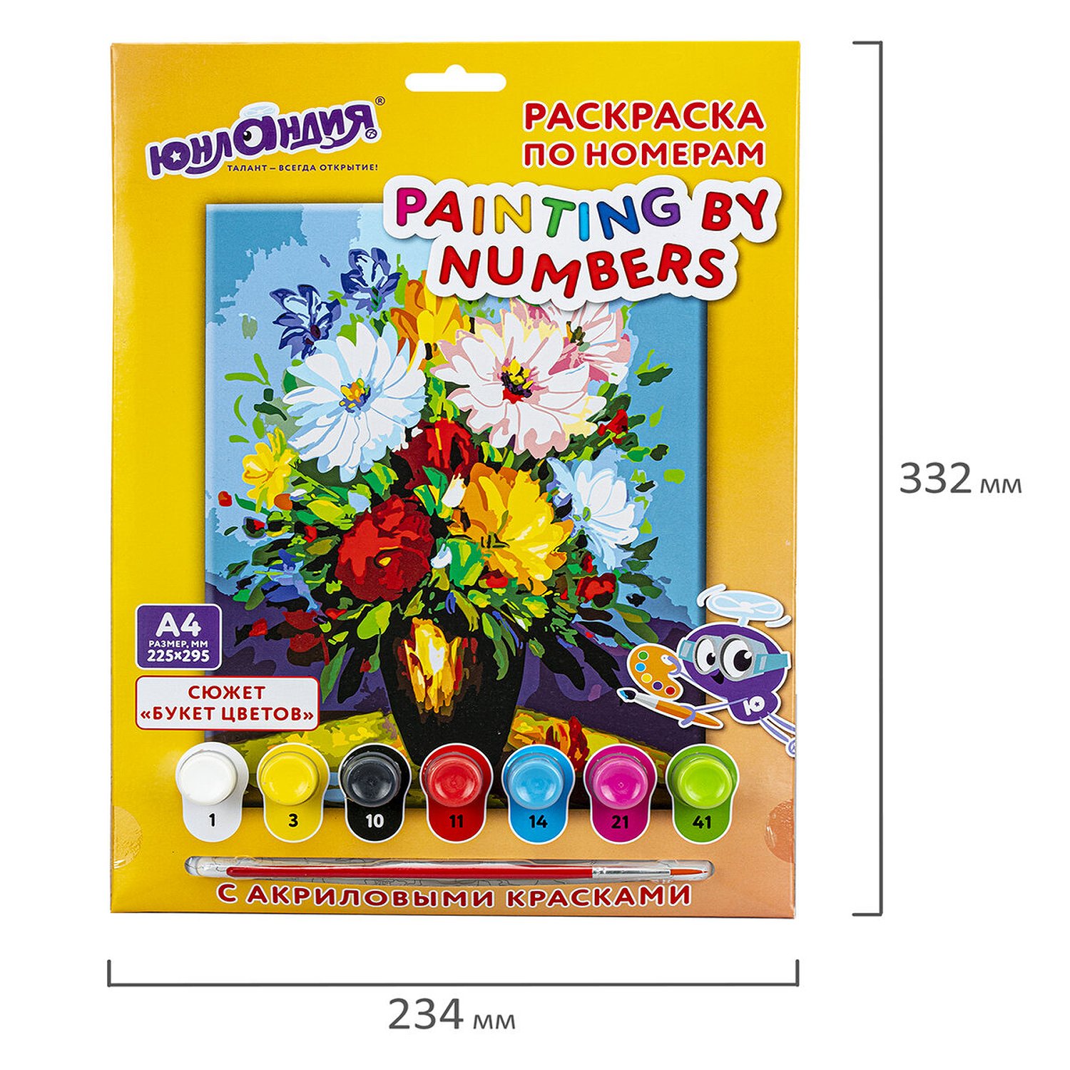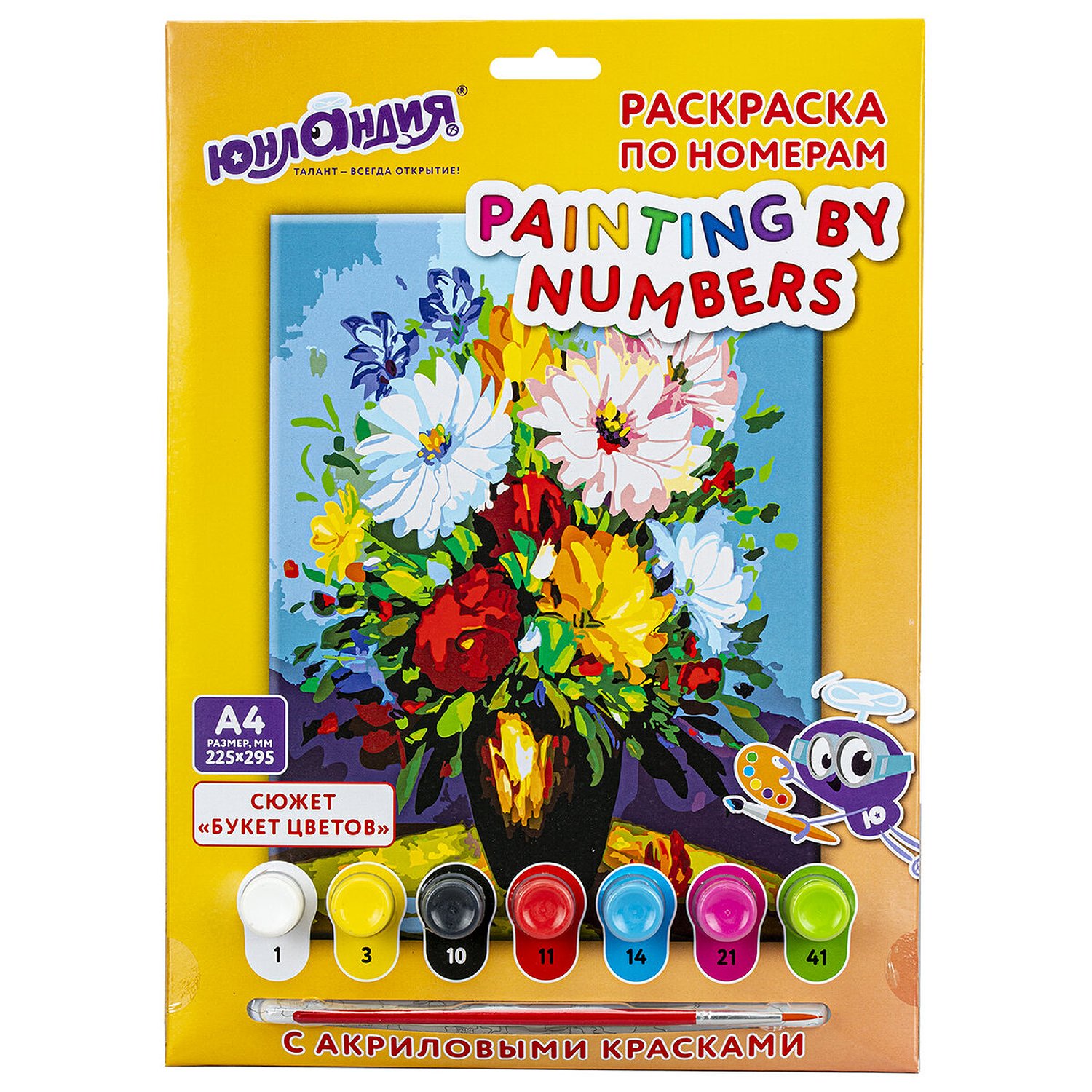 Картина по номерам Юнландия раскраска А4 с акриловыми красками Букет цветов на картоне с кистью 664152