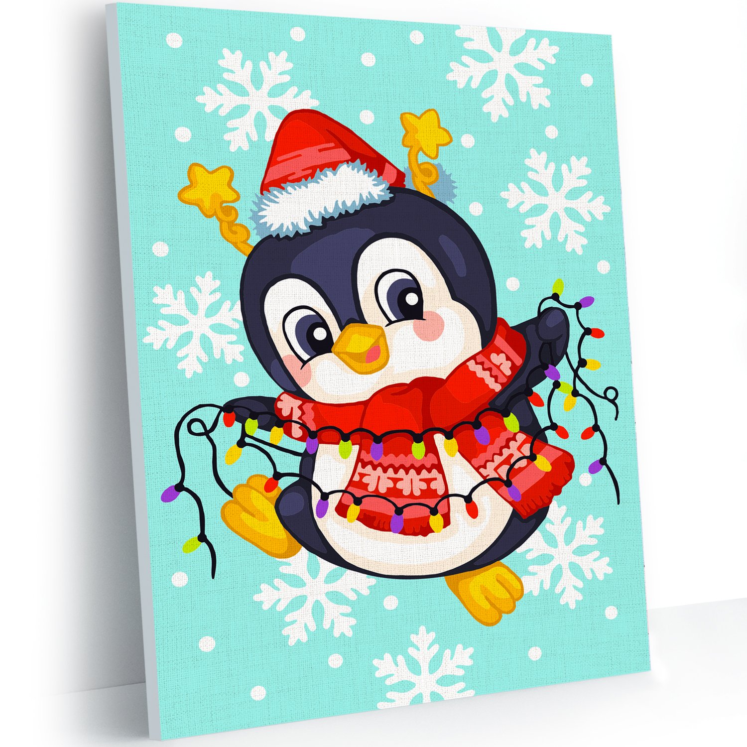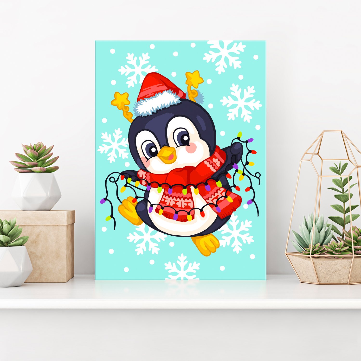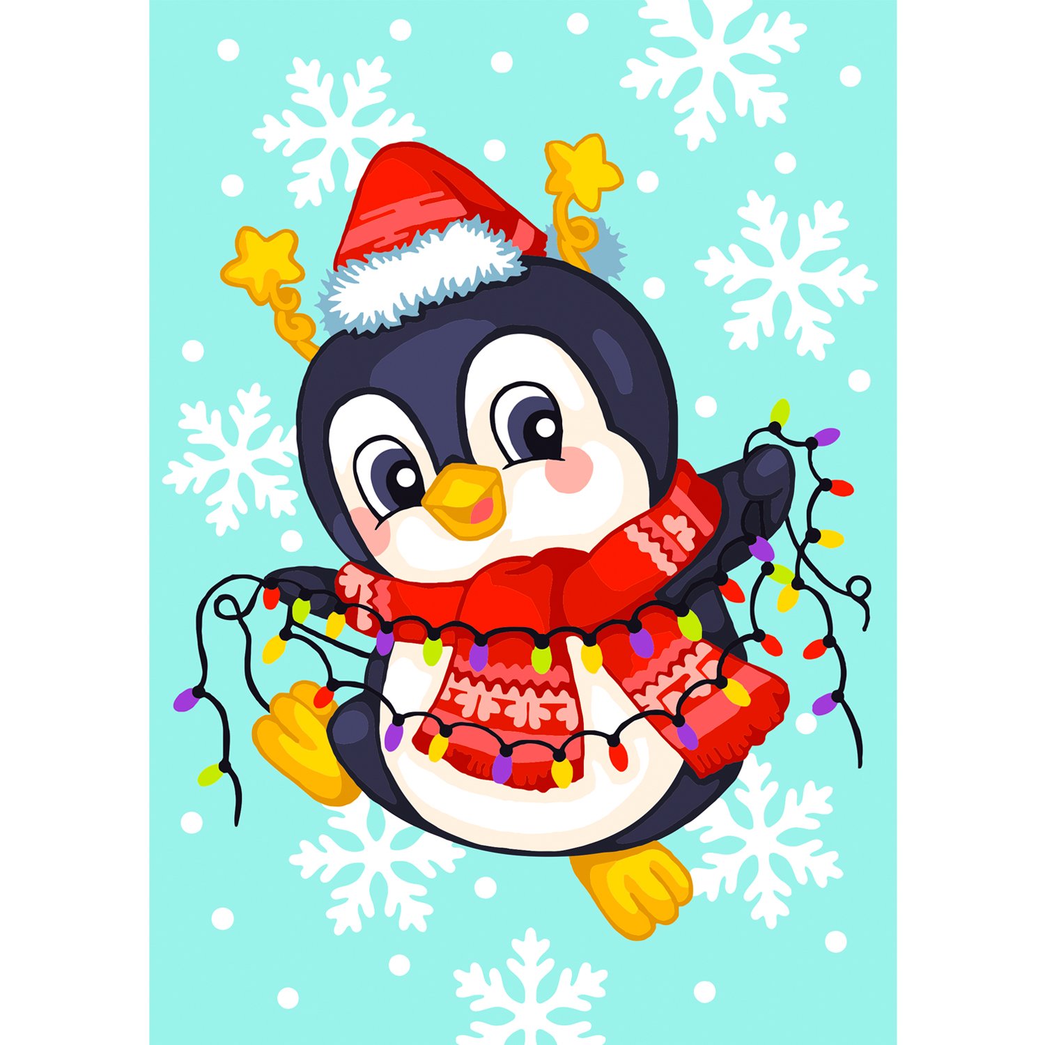 Картина по номерам ARTOP на картоне 15х21 Рождественский пингвин живопись роспись ребенку подарок NNM38