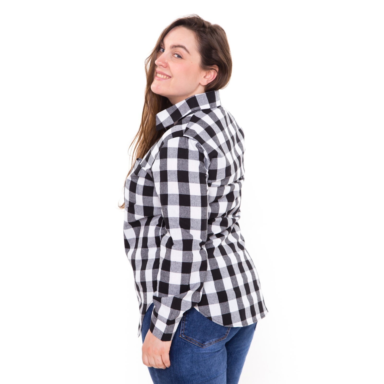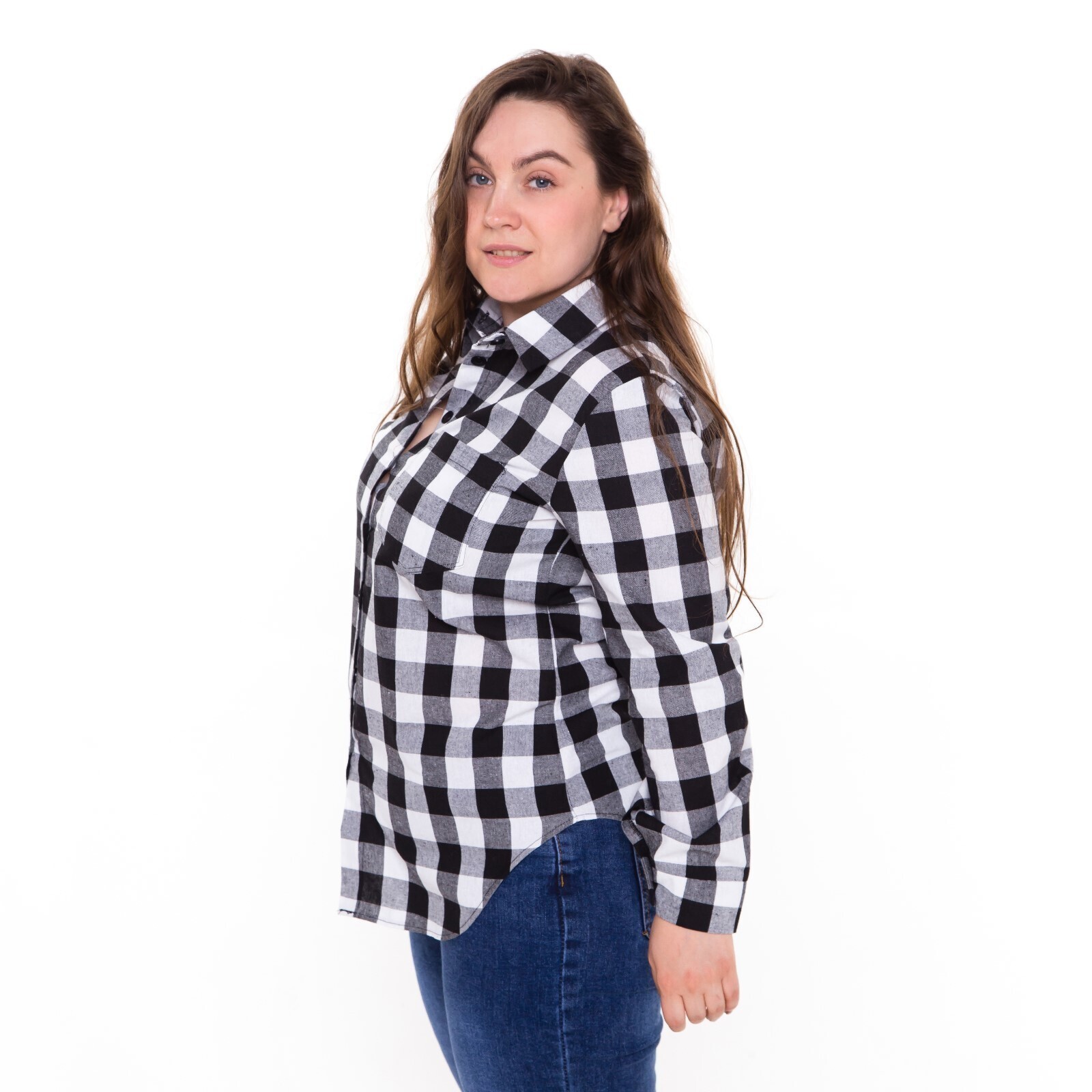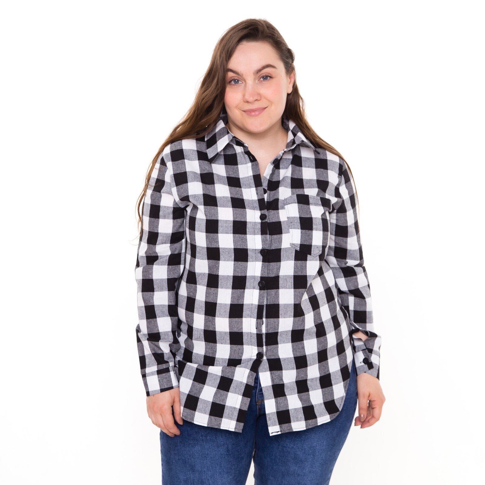 Рубашка женская, чёрно-белая клетка, размер 50