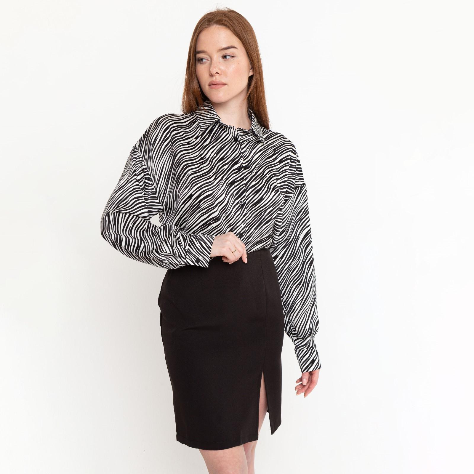 Блузка женская, цвет ч/б, принт зебра, р-р 46