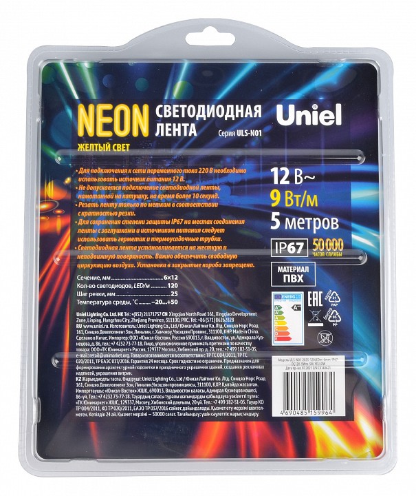 Дополнительная информацияПроизводитель Uniel. Дополнительные параметры - гибкий влагостойкий светодиодный неон 5 м в блистере:, герметичная силиконовая оболочка, предназначена для использования на улице, клейкое основание с защитной пленкой, цвет основания: белый, минимальный радиус изгиба - 30 мм, тип светодиодов: NEON, кратность резки: 25 мм при выборе блока питания следует учитывать общую мощность ленты или нескольких лент, соединенных вместе, с добавлением 10-20 % запаса по мощности. Основной цвет - белый