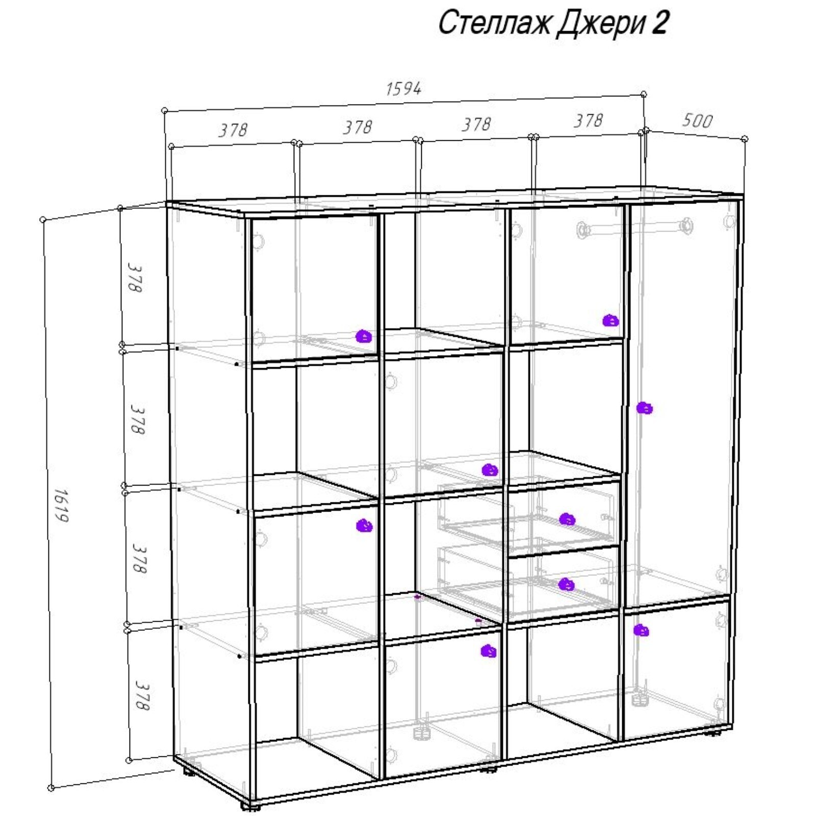 Стеллаж для детской комнаты Джери-2 белое дерево/ирис-лайм