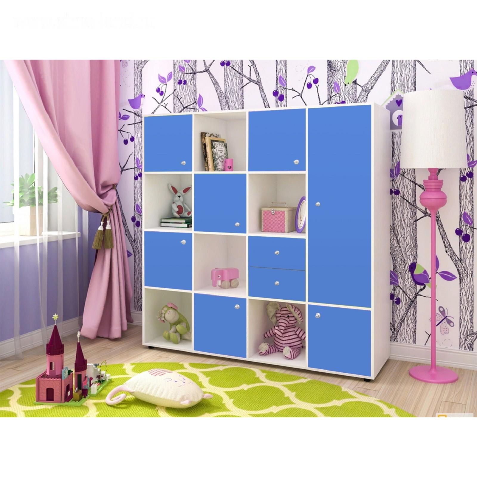 Стеллаж для детской комнаты Джери-2 белое дерево/голубой