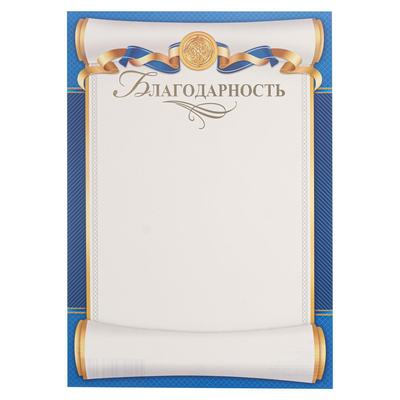 Благодарность "Универсальная" синяя рамка, тиснение, А4