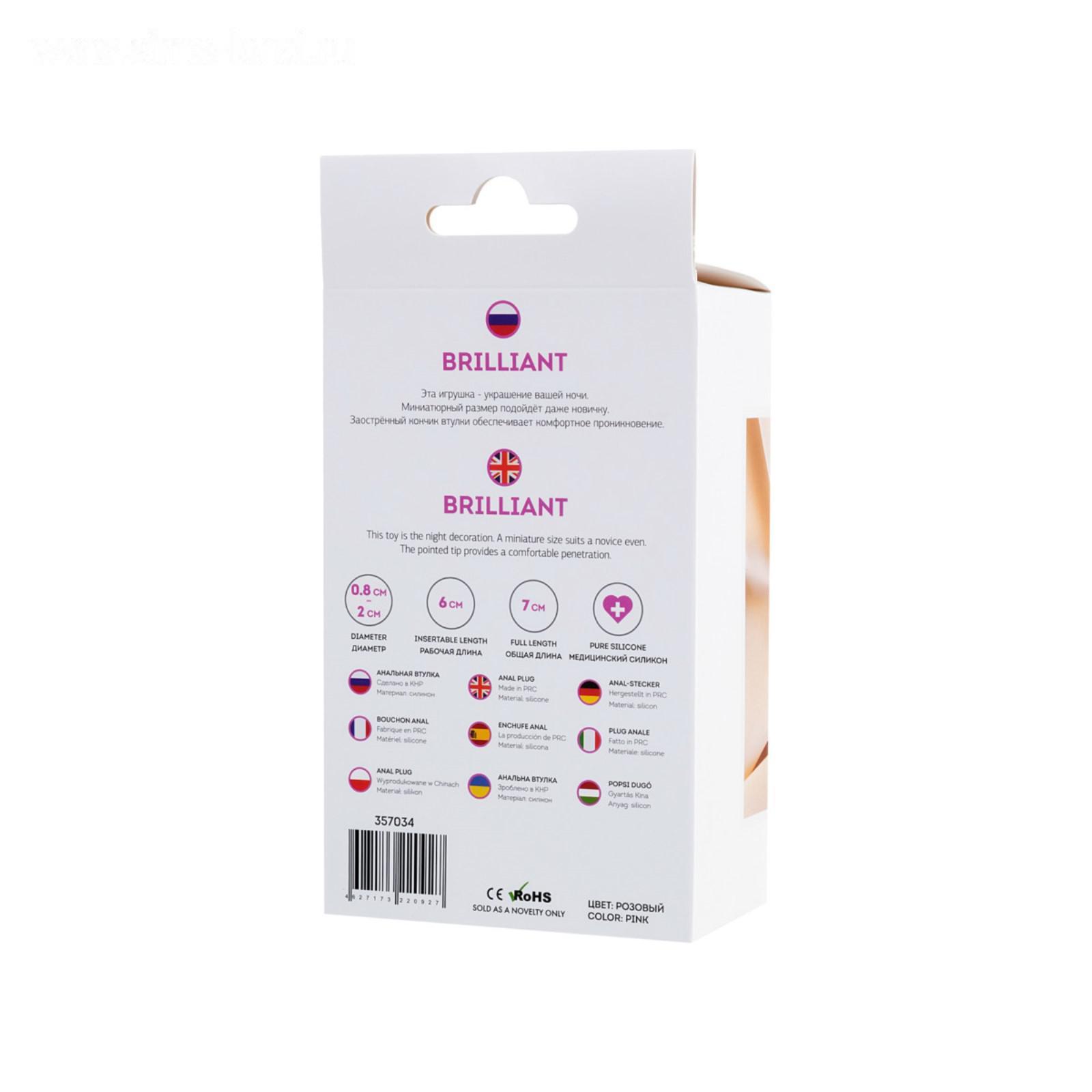Анальная пробка Brilliant, силикон, цвет розовый, 7 см, d=2 см