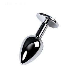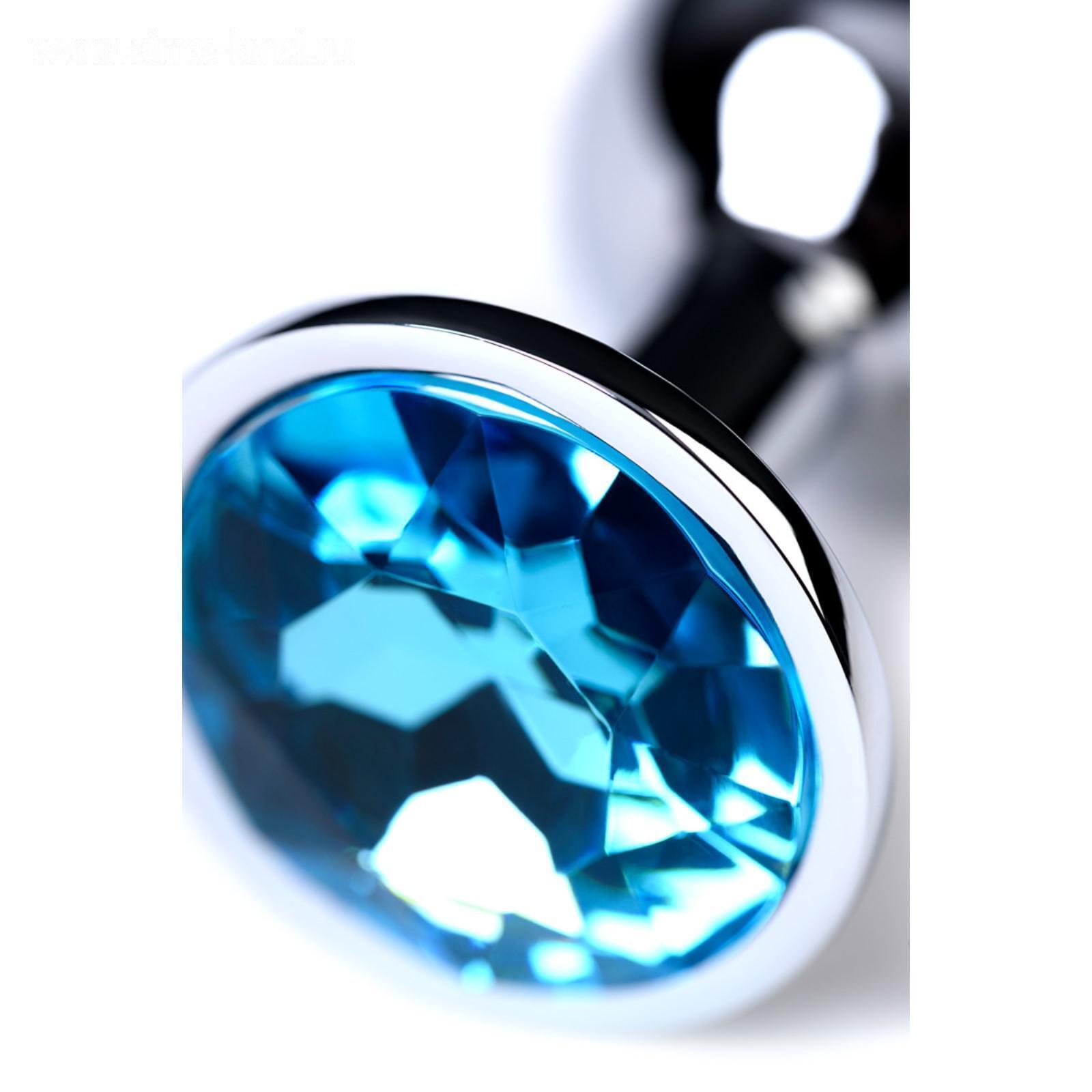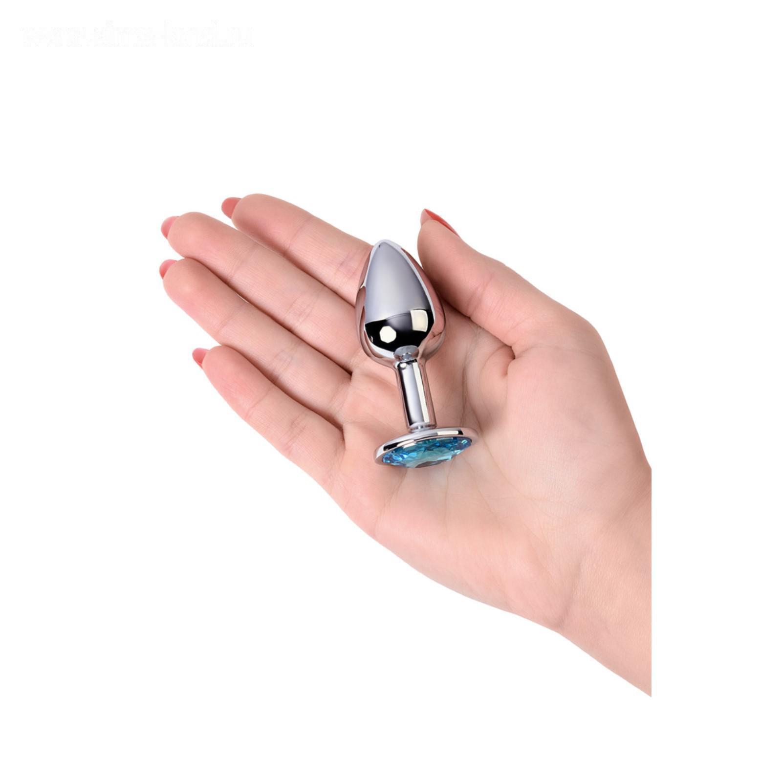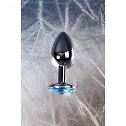 Анальная пробка со стразом Toyfa Metal, серебристый, топаз, 7 см, d=2,8 см