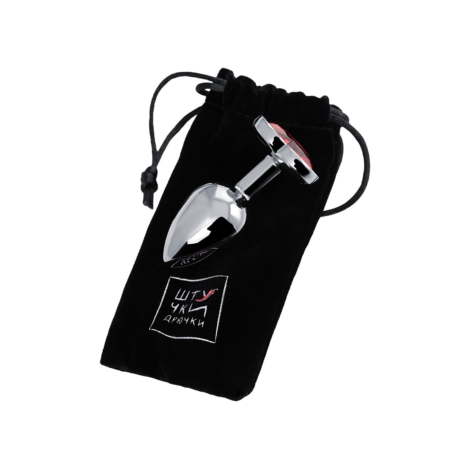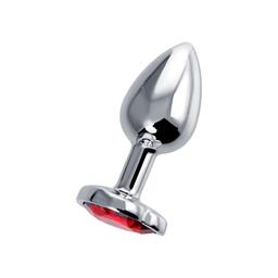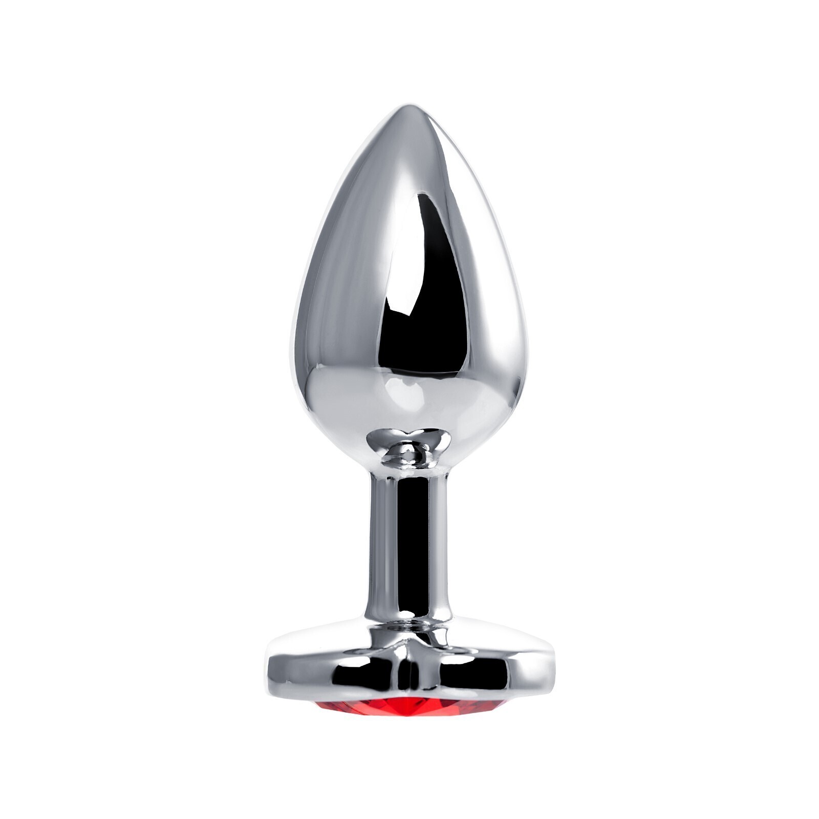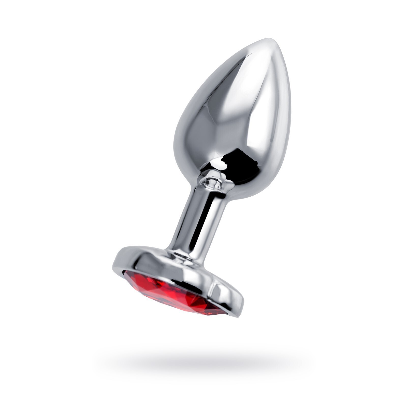 Анальная пробка, металл, серебристый, с кристаллом цвета рубин, 7 см, d 2,7 см, 50 г