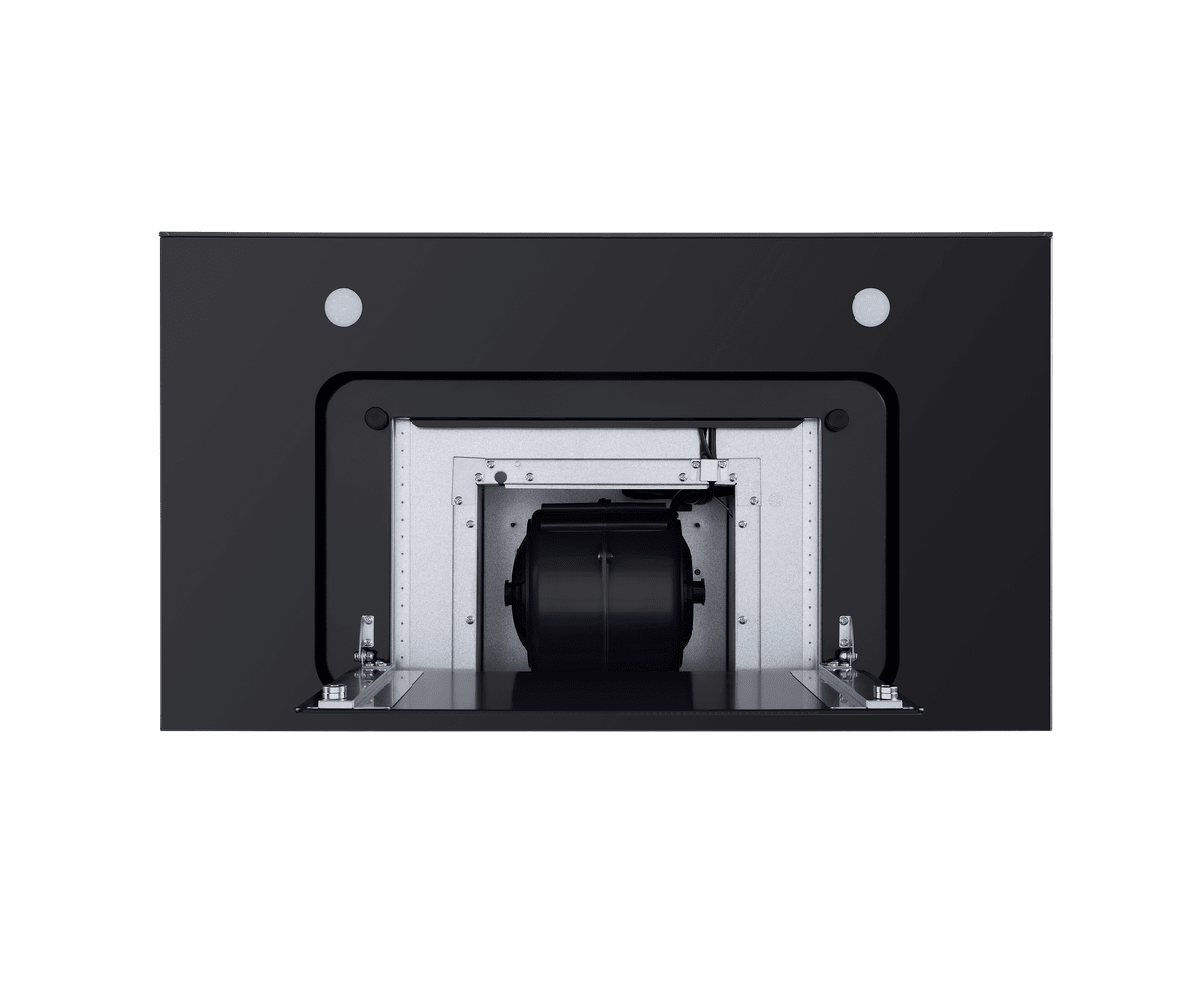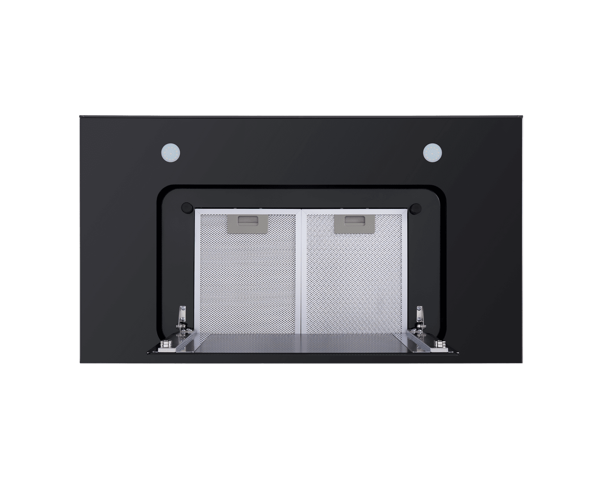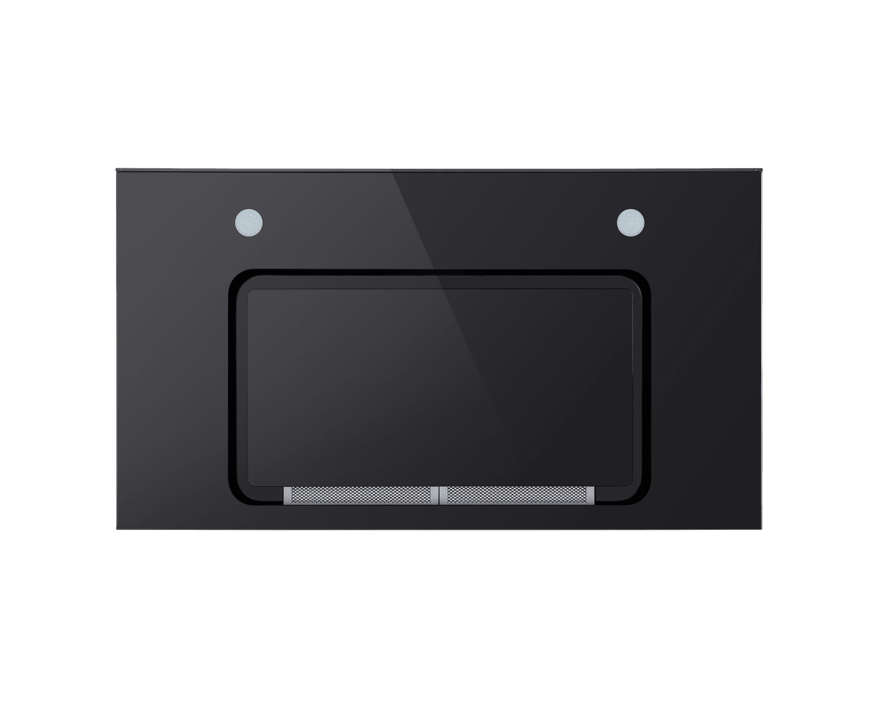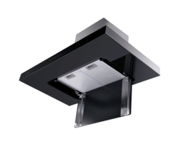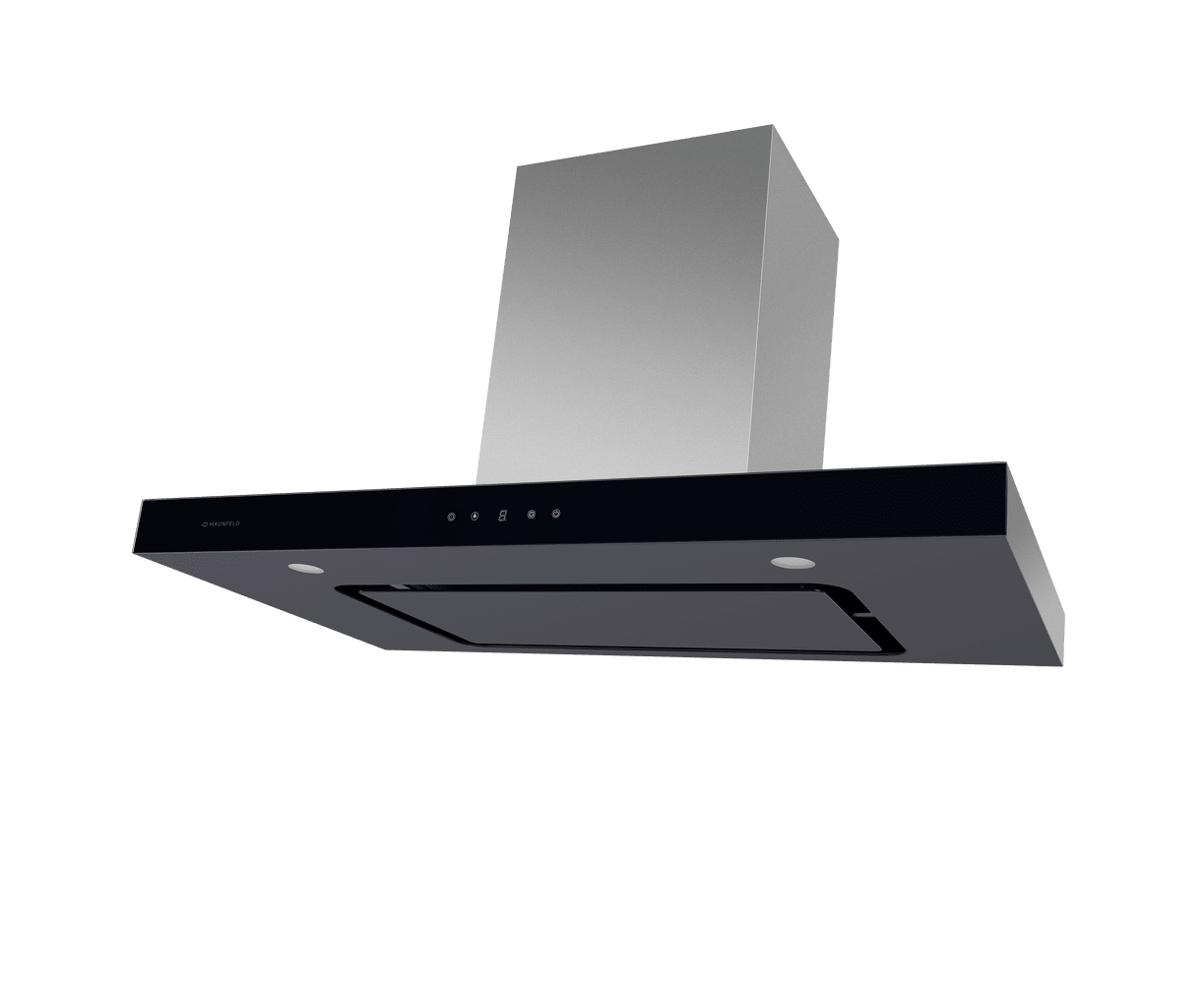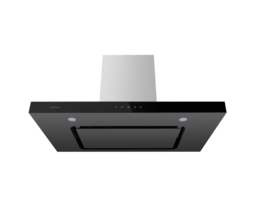 Дизайнерская Т-образная вытяжка шириной 90 см благодаря своим мощностным показателям и большой рабочей поверхности прекрасно подойдет для очень большой кухни (до 40 кв.м). Монтируется на стену над поверхностью плиты. Может использоваться для отвода воздуха из помещения при подключении к системе домовой вентиляции или очищать воздух с помощью сменного угольного фильтра.Корпус сделан из нержавеющей стали. Рабочая поверхность и откидная панель выполнены из закаленного глянцевого стекла черного цвета. За панелью находятся 2 многослойных жироулавливающих алюминиевых фильтра, которые при необходимости можно легко вынуть из вытяжки.Сенсорная панель управления с дисплеем расположена по центру фасада, также выполненного из закаленного стекла. Можно выбрать один из 3-х скоростных режимов работы, установить таймер отключения вытяжки и активировать светодиодную подсветку (2 LED-источника по 1 Вт каждый). Мотор мощностью 270 Вт работает с максимальной производительностью 1050 м3/ч. Качественная сборка и использование лучших комплектующих позволили снизить уровень шума до 63 дБ.
