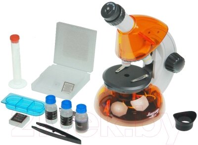 • Комплектация щипцы, документация, набор для опытов, штатив, окуляр, основание, препарат, предметное стекло, предметный столик, объектив, револьверное устройство, покровное стекло, окулярная насадка