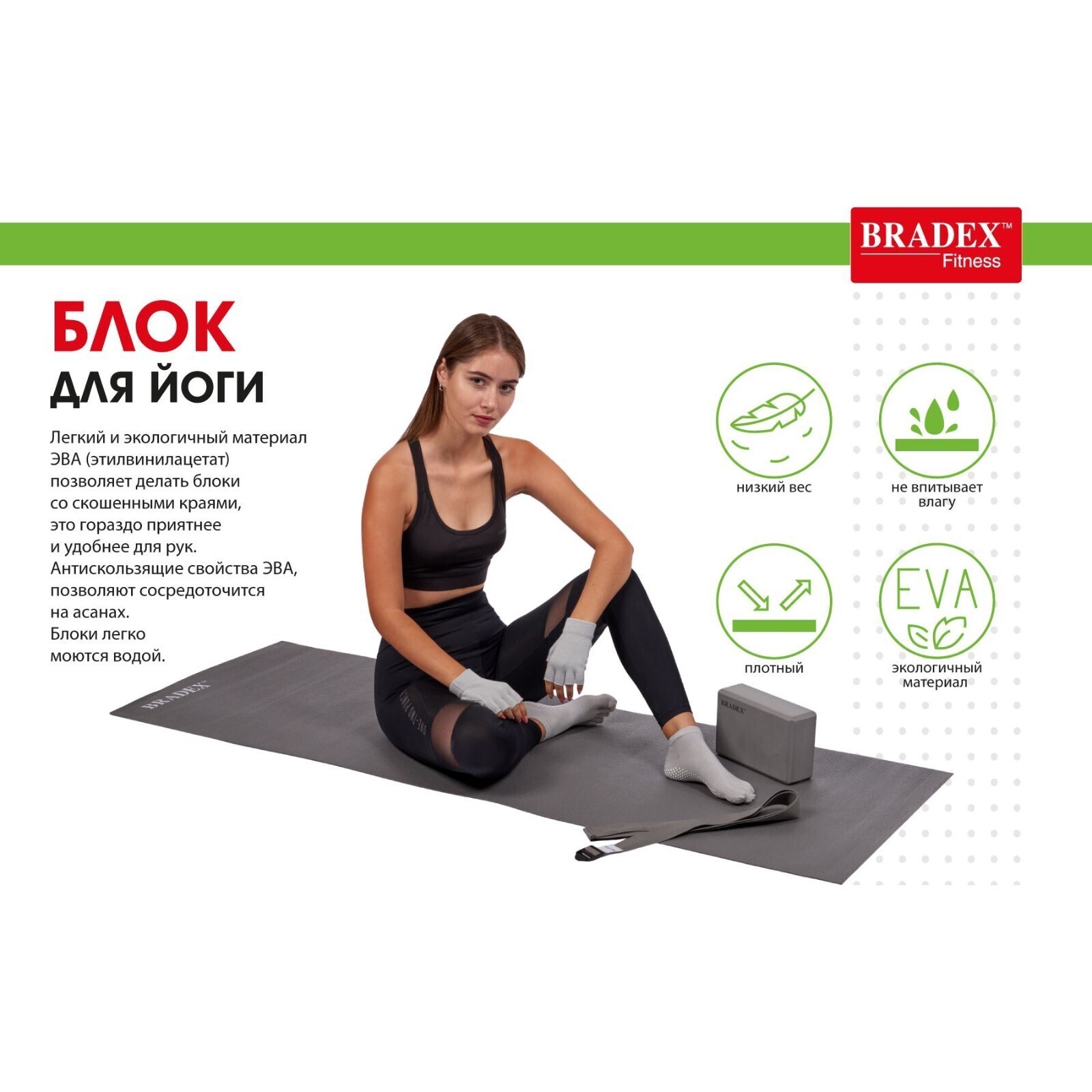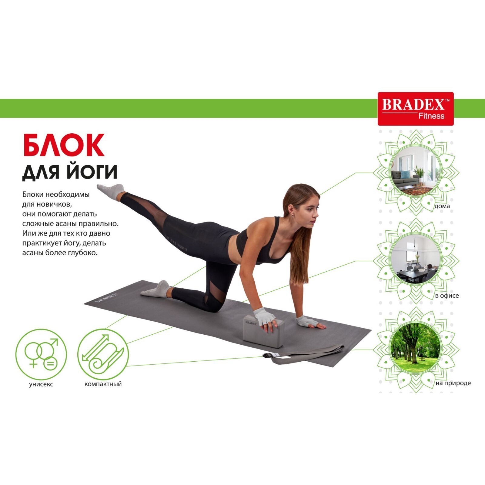 Блок для йоги Bradex, 23 х 15 х 7,5 см, 130 гр., цвет серый