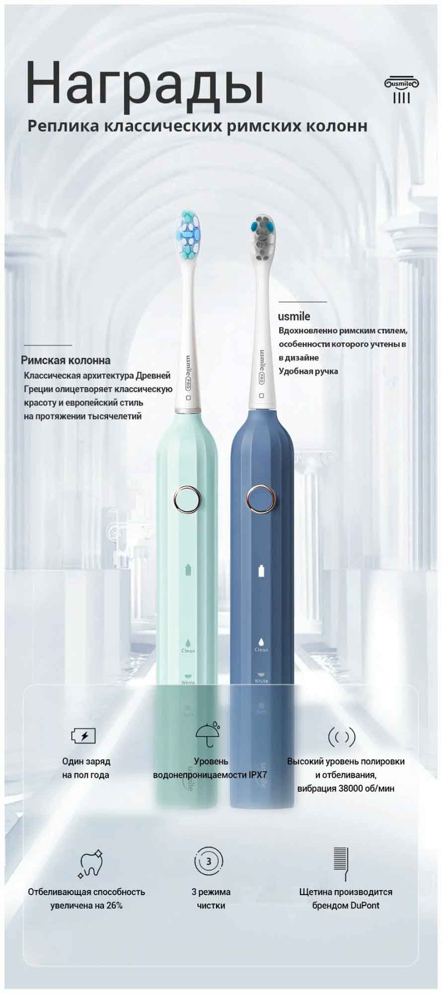Описание товара Электрическая зубная щетка Usmile Y1S (мята)