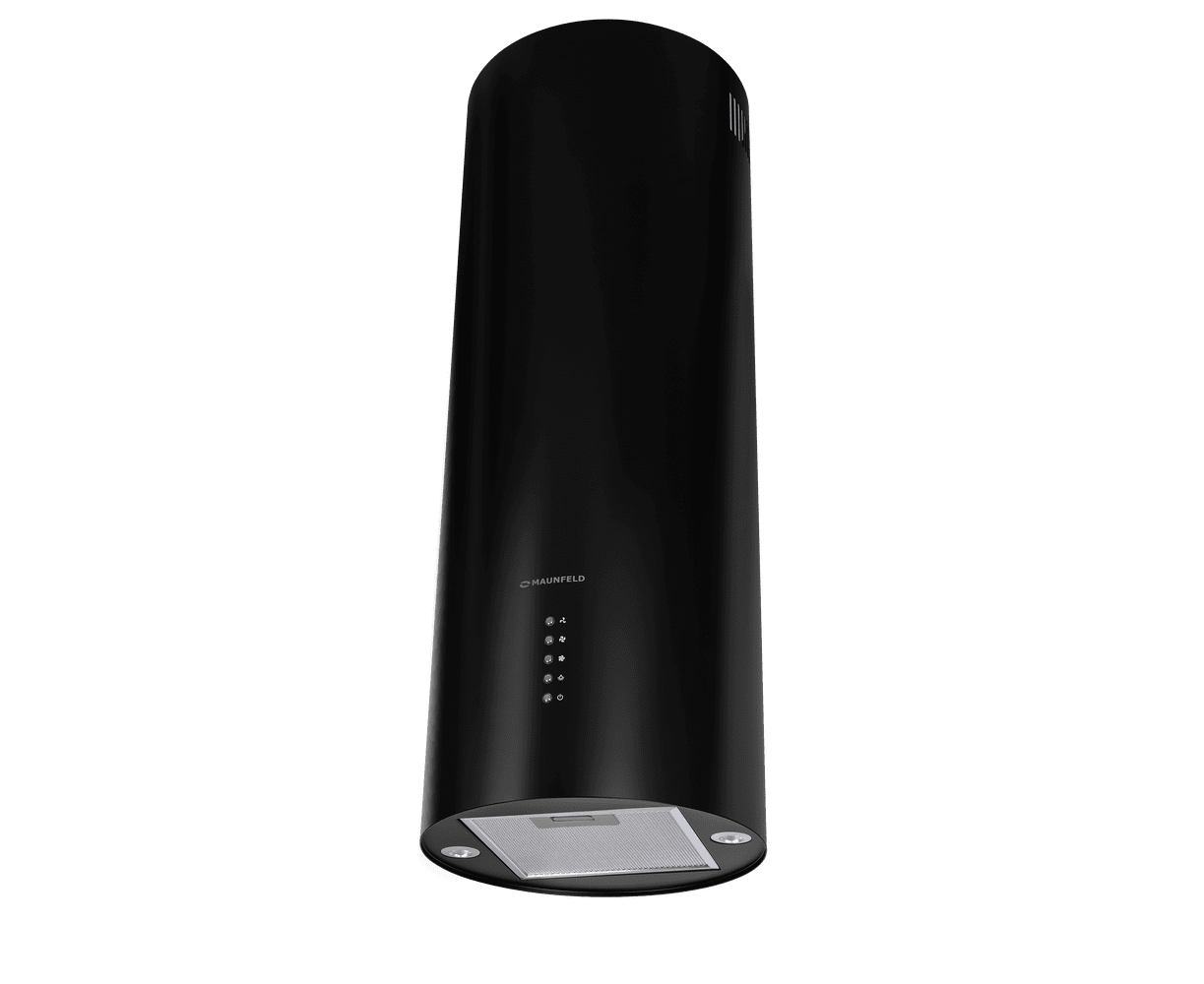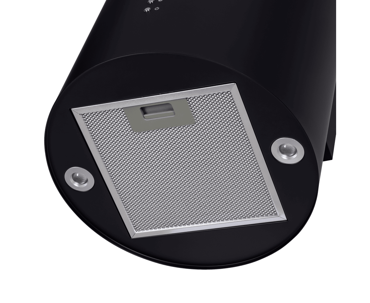 Необычная вытяжка благодаря стильному исполнению и техническим характеристикам (ширина вытяжки 35 см) впишется в интерьер любой кухни. Эта модель может работать в двух режимах: отвода (при подключении вытяжки к системе вентиляции) и рециркуляции (при использовании сменного угольного фильтра в вытяжке).Корпус цилиндрической формы, выполненный из нержавеющей стали с термостойким покрытием черного цвета, устанавливается на стену над поверхностью плиты. Алюминиевый многослойный жироулавливающий фильтр находится в нижнем торце вытяжки. Электронное управление с подсветкой позволит выбрать один из 3-х режимов работы вентилятора и включить 2 светодиодные лампочки (1 Вт), расположенные по бокам от фильтра.Мощность мотора составляет 192 Вт. Максимальная производительность вытяжки достигает 1050 м3/ч, что позволяет использовать ее на очень большой кухне (до 40 кв.м) Тихая работа и высокая эффективность вытяжки обеспечиваются периметральным принципом втягивания воздуха и особой конструкцией. Уровень шума при самой высокой скорости работы всего 63 Дб.