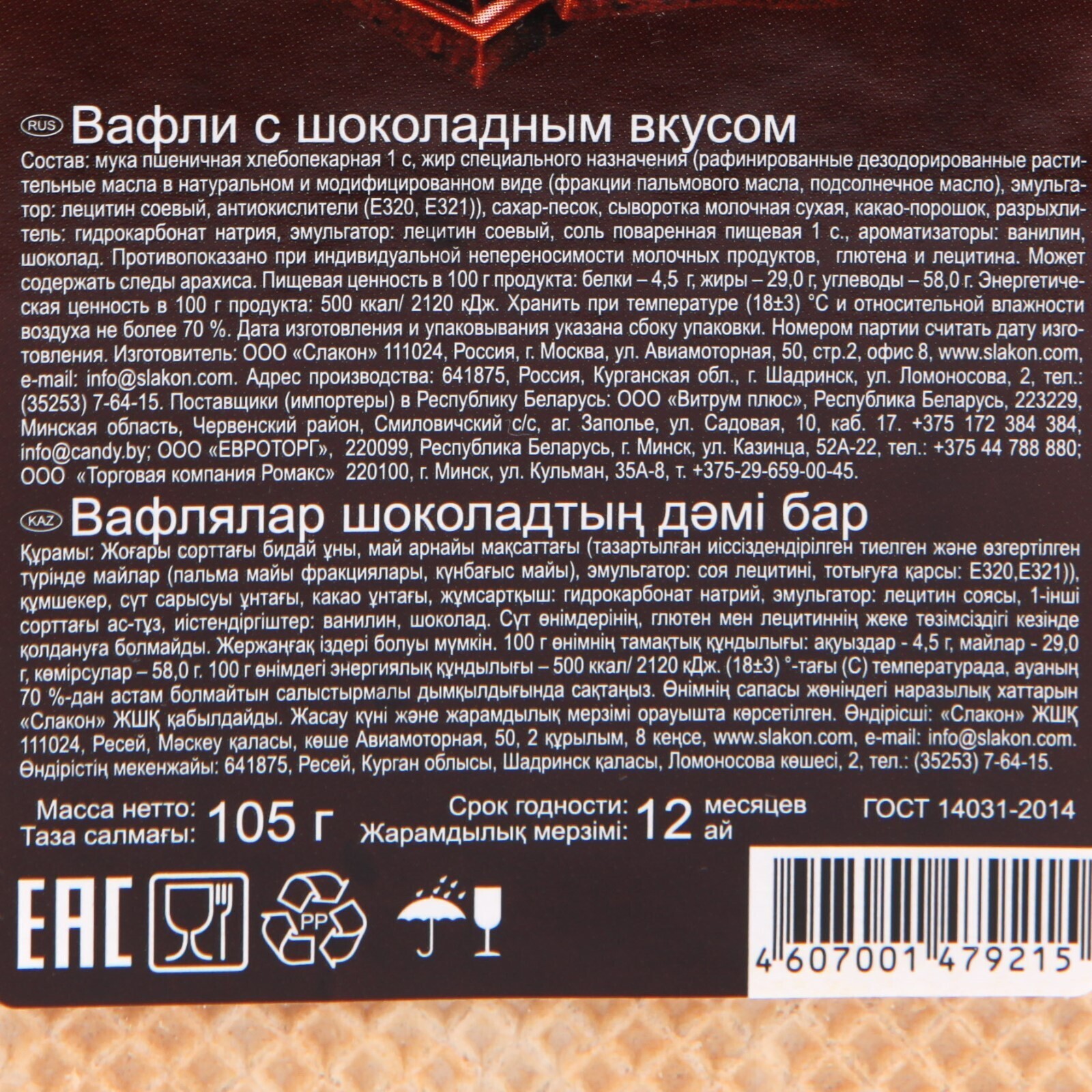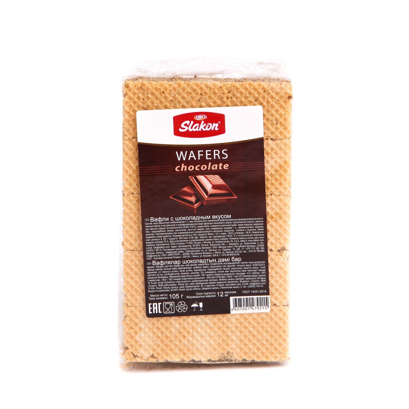 Вафли Slakon шоколадный вкус 105г/Слакон