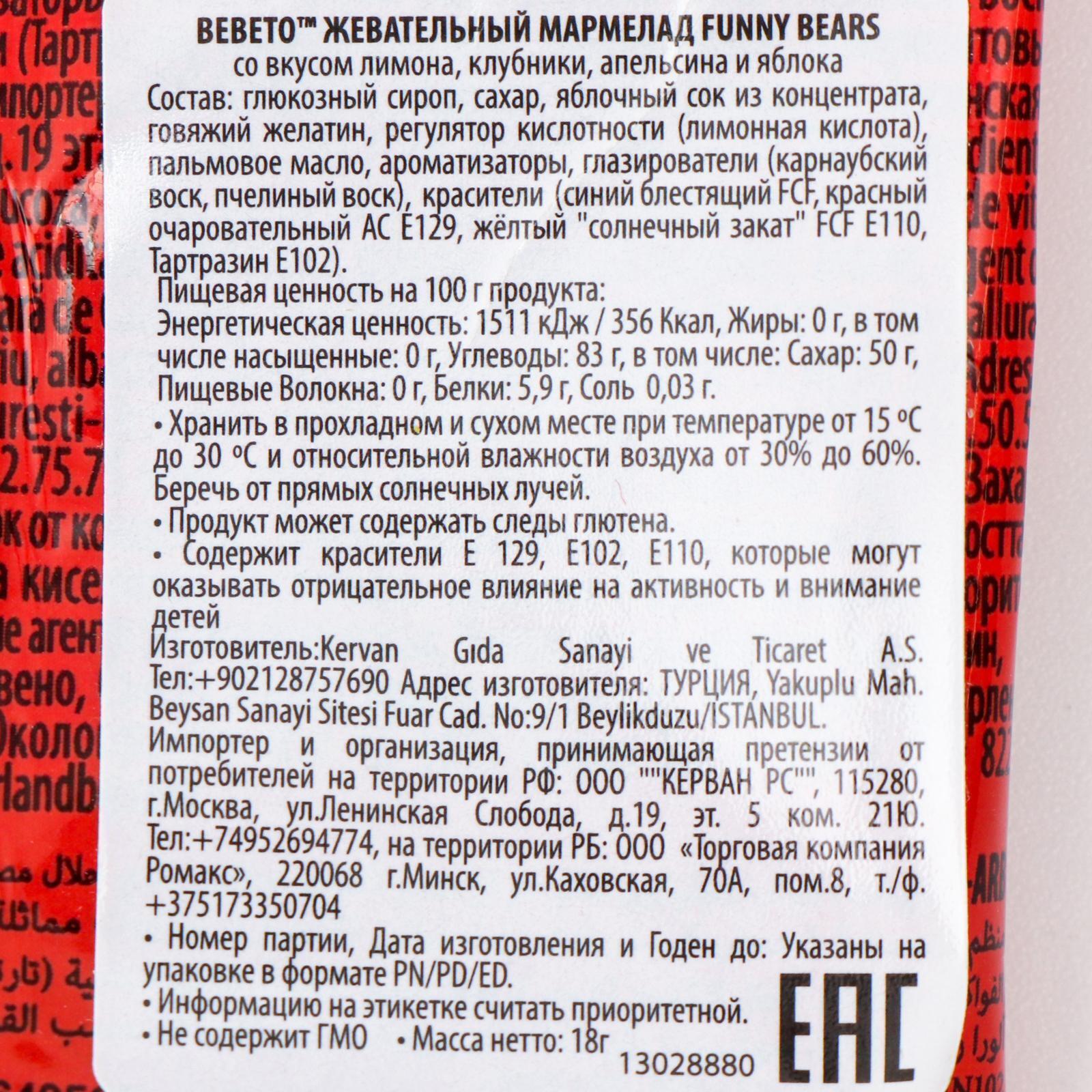 Микс Bebeto из самых популярных вкусов и форм мармелада. Содержит натуральный фруктовый сок.