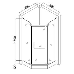 Душевое ограждение Taliente TA-09093MP, 180 х 90 см, матовое, пентагональное, 6 мм, хром