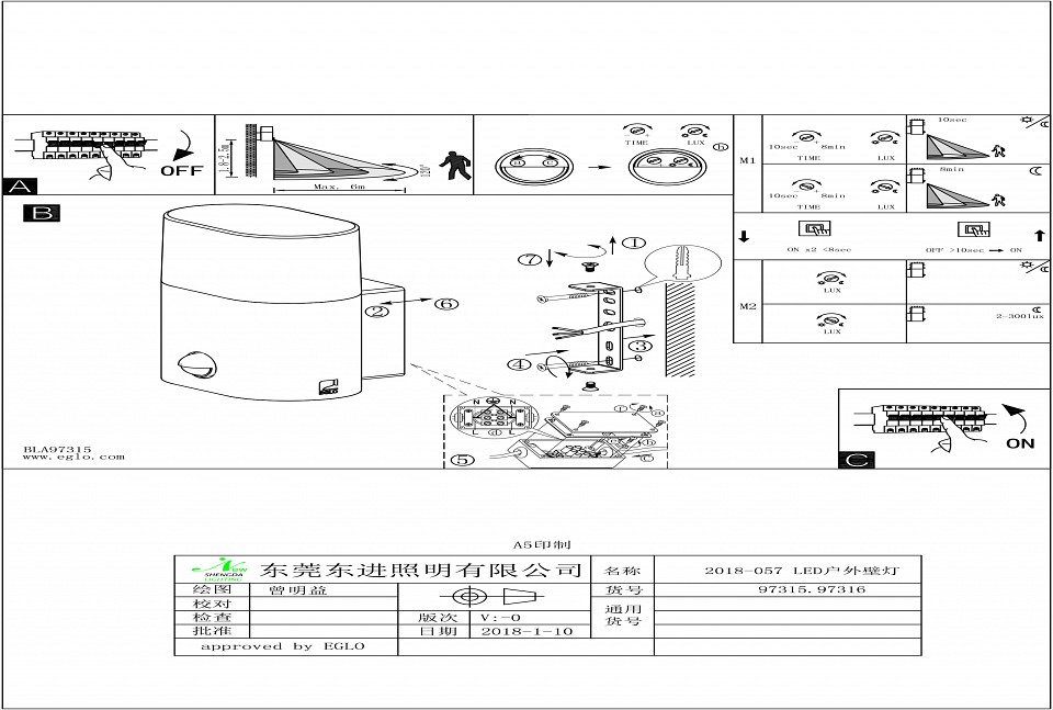 • Дополнительная информация Производитель Eglo ПРОМО. Дополнительные параметры - дальность действия датчика: 6 м, диапазон освещенности: 10-2000 люкс, время отключения: 10 сек - 8 мин, угол чувствительности: 110°. Светоотдача, лм/Вт - 114. Основной цвет - черно-белый