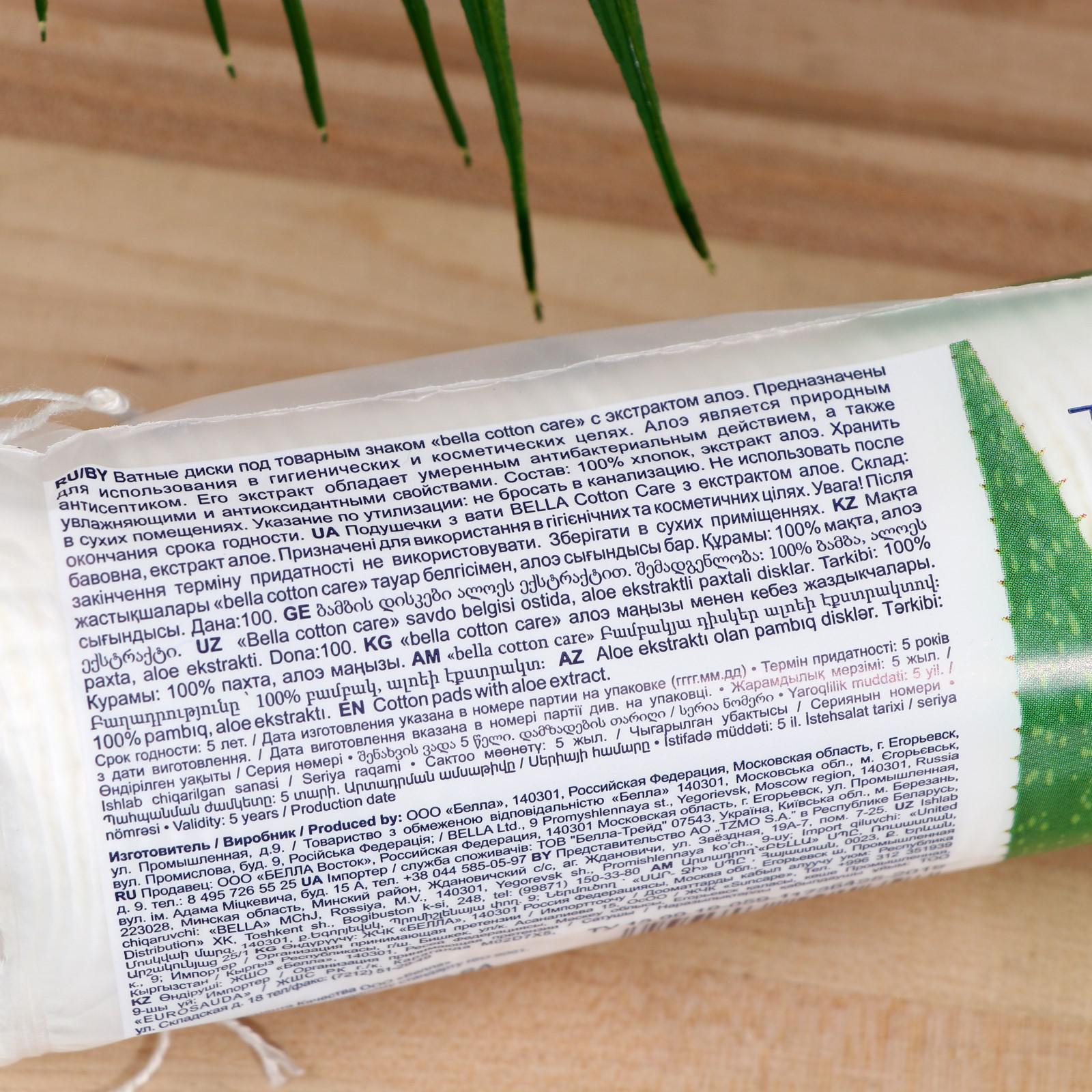 Мягкие нежные подушечки повышенной плотности bella cotton care сделаны из 100% хлопка c экстрактом алоэ. Специальная технология изготовления water jet скрепляет волокна подушечки без применения клеящих химических веществ, используется только прошедшая специальную очистку вода. Экстракт алоэ обладает антибактериальным действием, а также увлажняющими и антиоксидантными свойствами. Он хорошо подходит для ухода за чувствительной кожей. Подушечки прекрасно впитывают, деликатно очищают и удобны в использовании. Они сохраняют форму, не превращаясь в вату во влажном состоянии. Закрытый край обеспечивает надежность в использовании без отслаивания ворсинок. Это особенно важно при косметических процедурах для области вокруг глаз. Поверхность дисков плотная с тиснением, в виде «пчелиных сот», что обеспечивает лучшее распределение косметического средства по поверхности и более эффективное очищение. Не содержат синтетических отдушек.