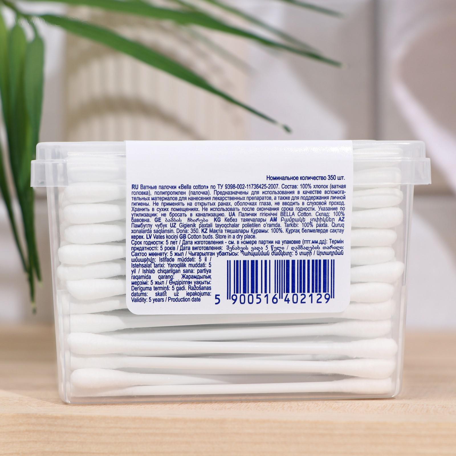 Ватные палочки bella cotton 350 шт. (коробка квадрат)