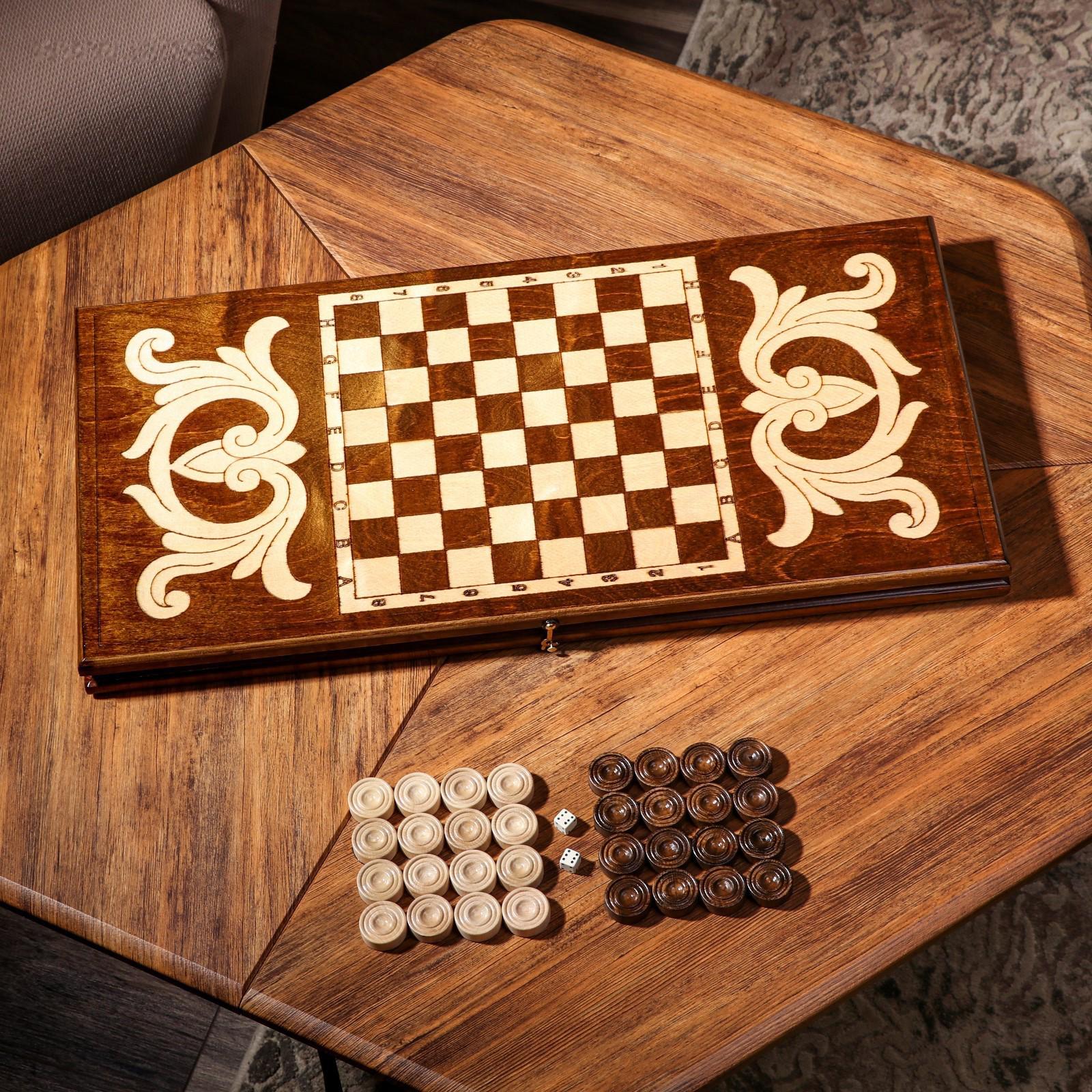 Нарды ручной работы "Медведь", 60х30 см, с шахматным полем, массив ореха, Армения