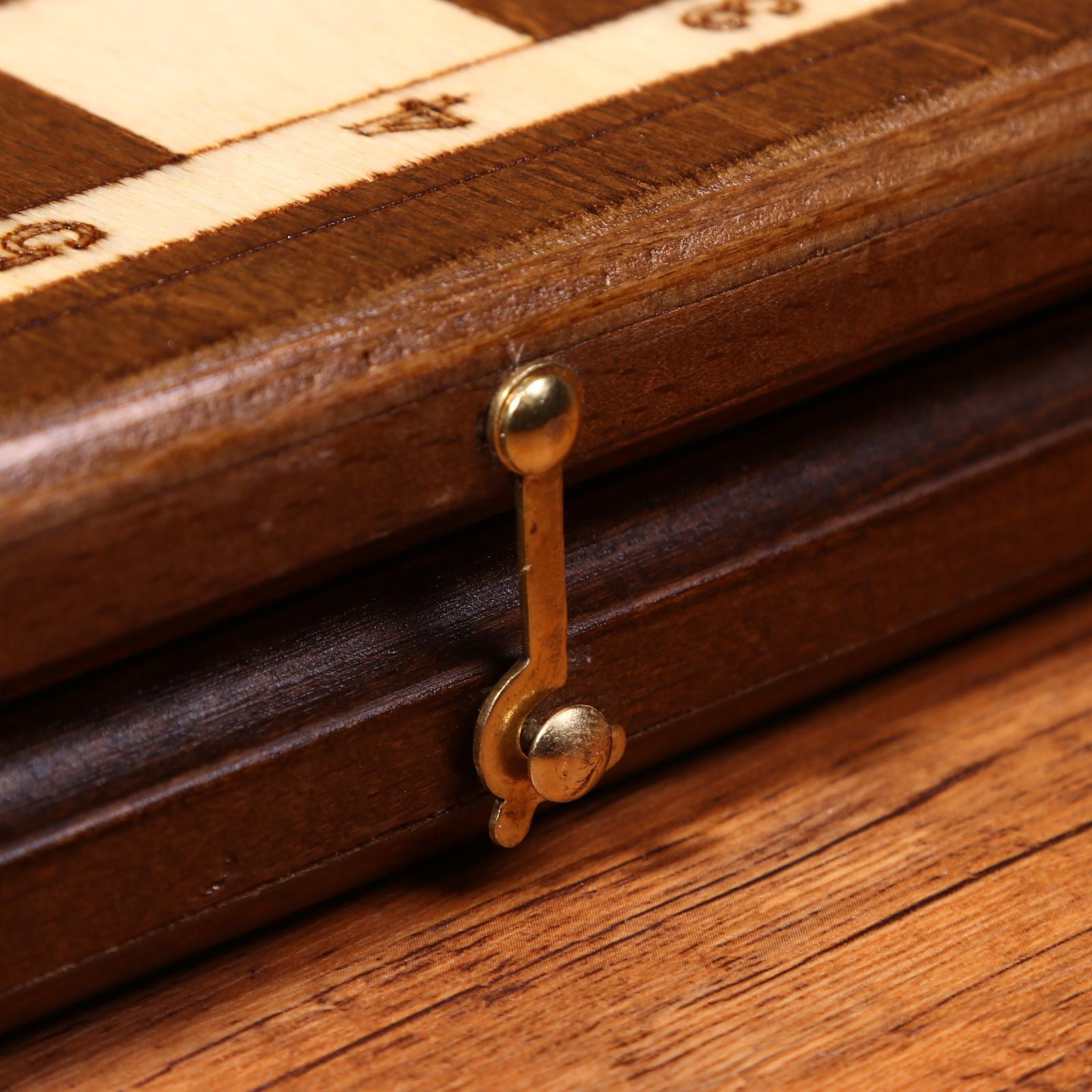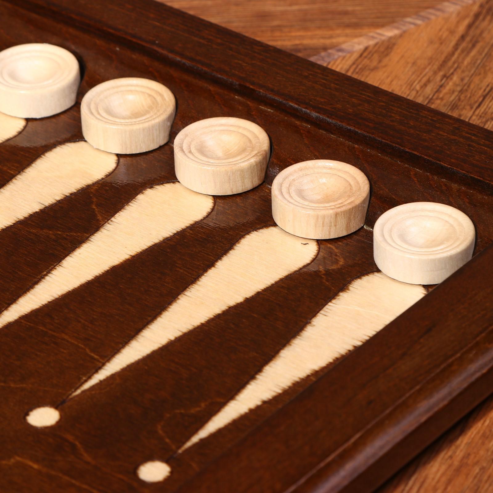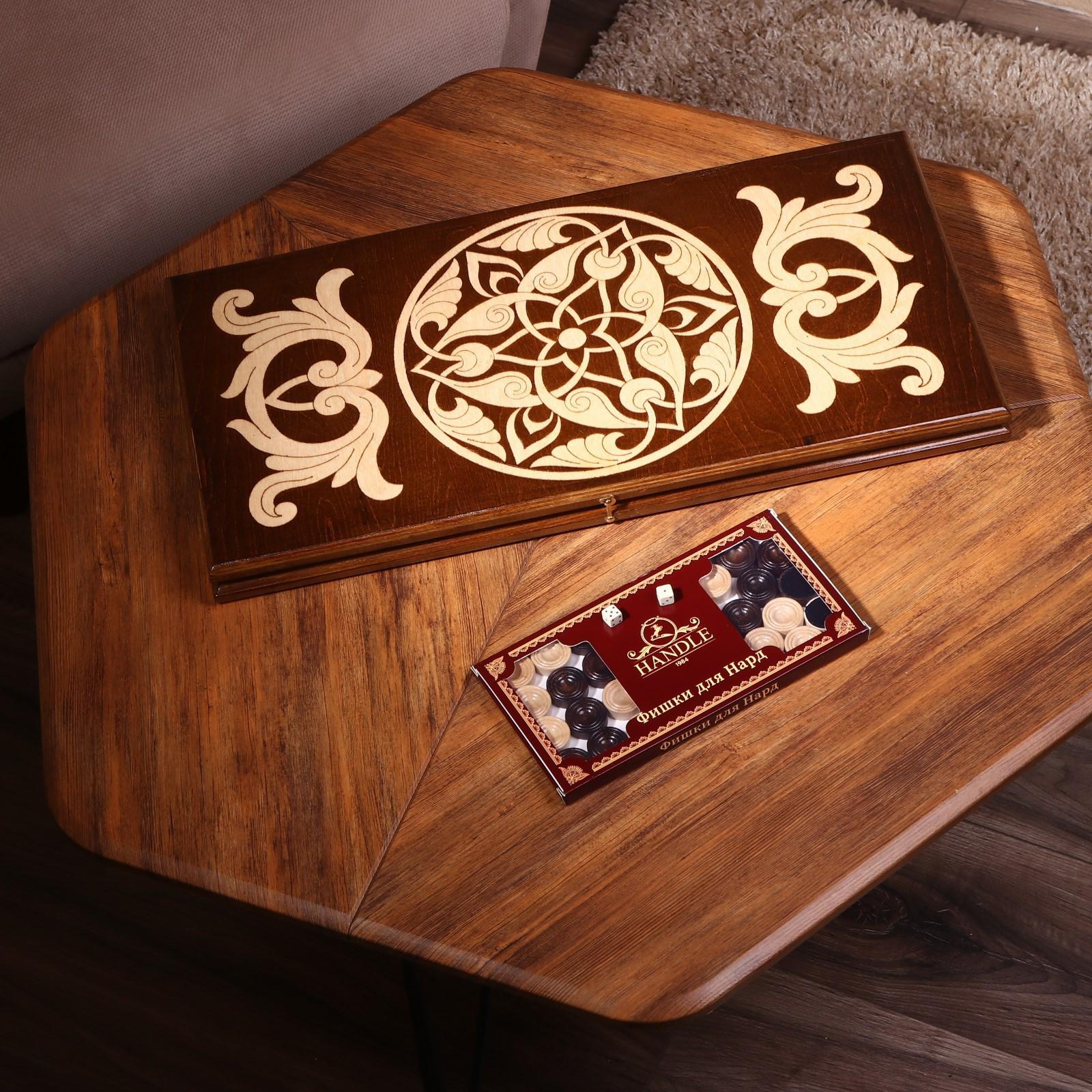 Нарды ручной работы "Треугольноый узор", 60х30 см, с шахматным полем, массив ореха, Армения