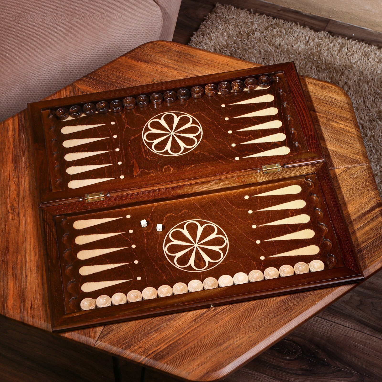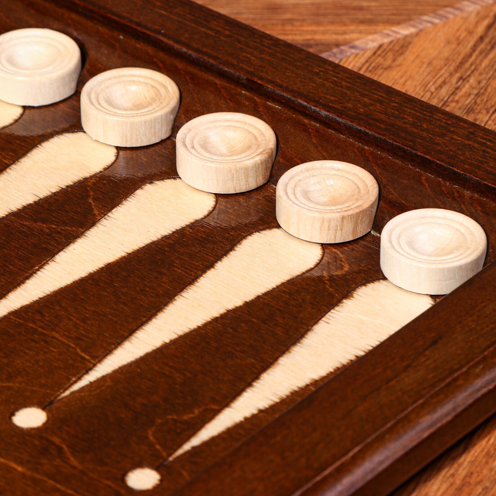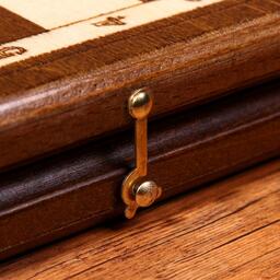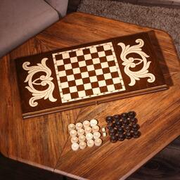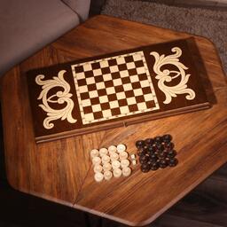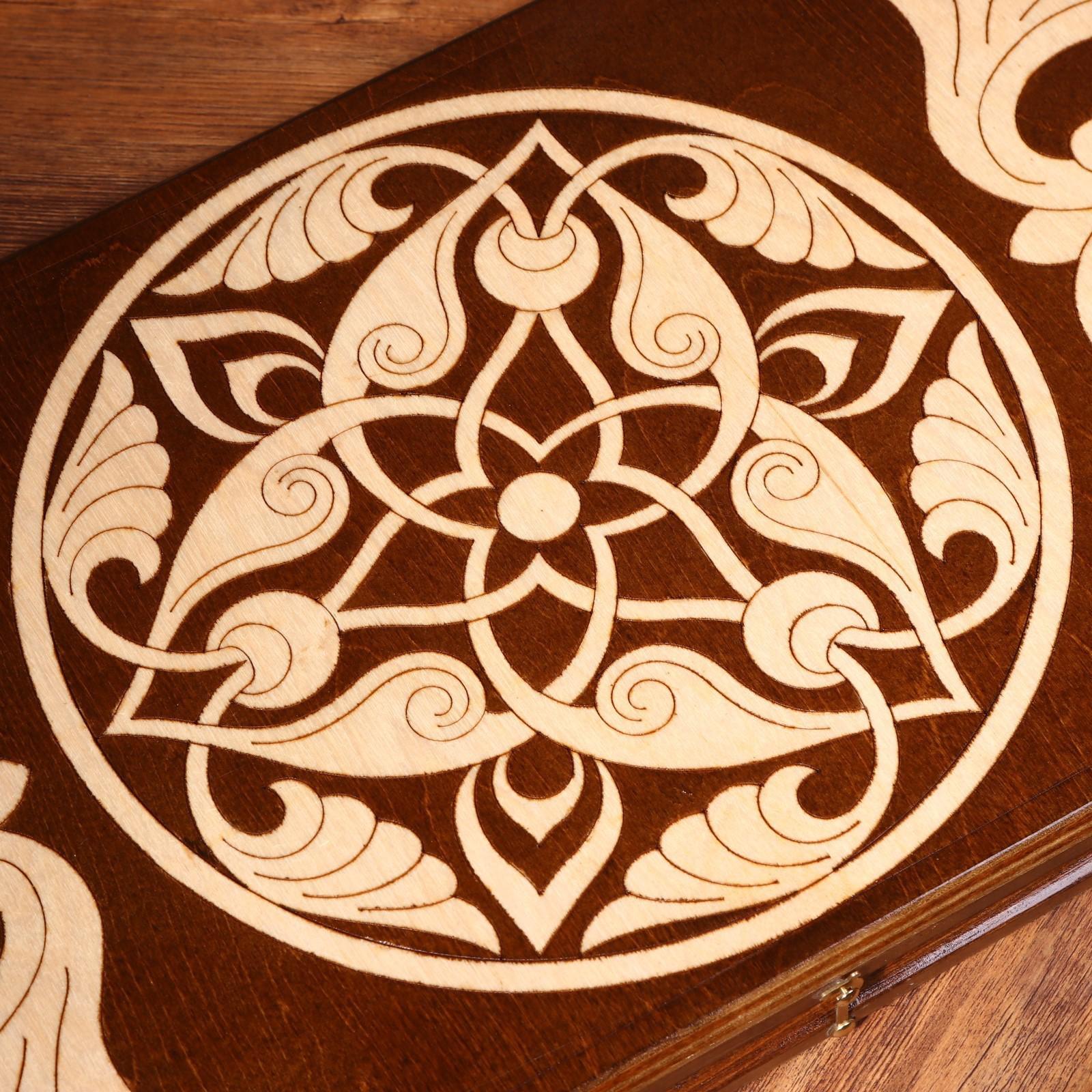 Нарды ручной работы "Треугольноый узор", 60х30 см, с шахматным полем, массив ореха, Армения
