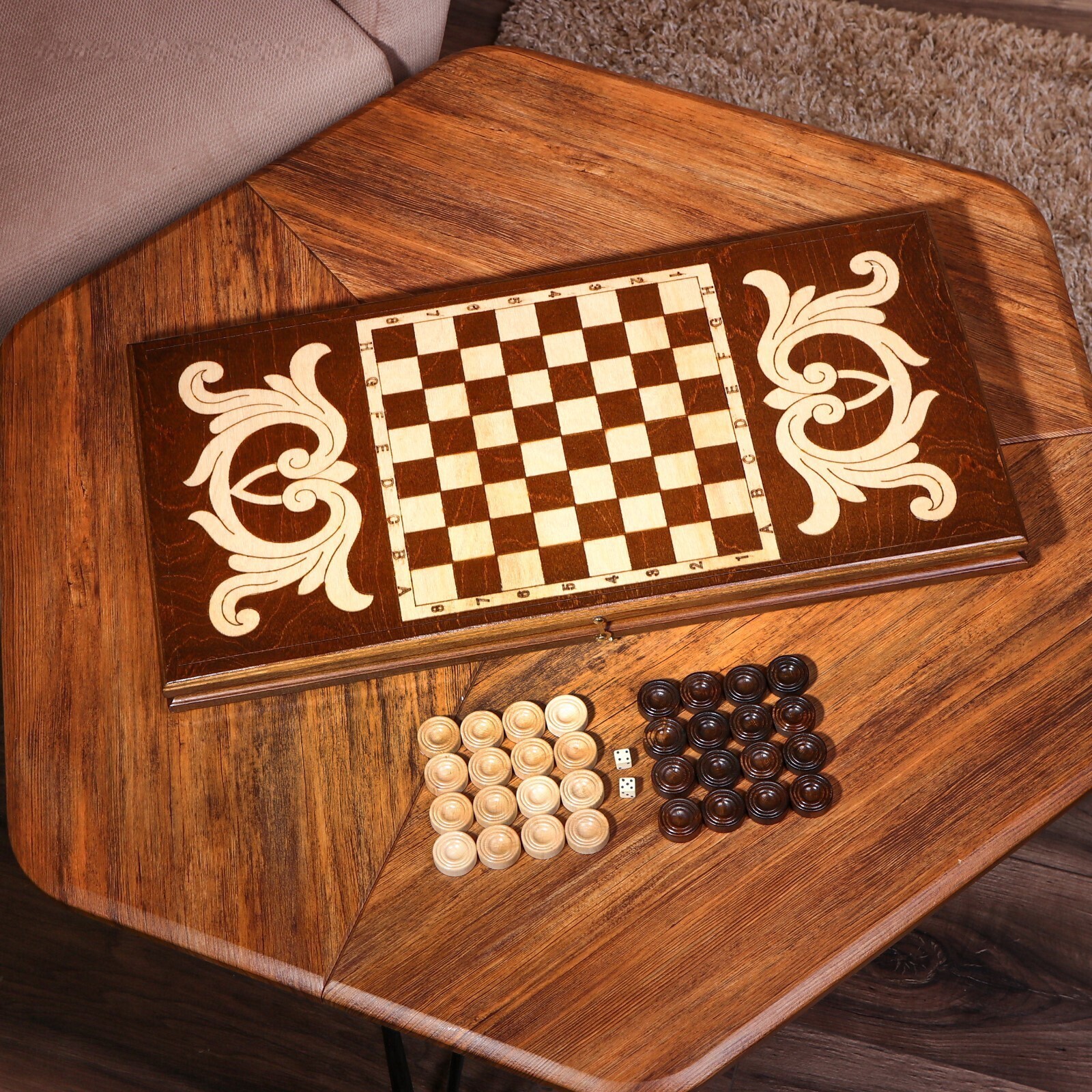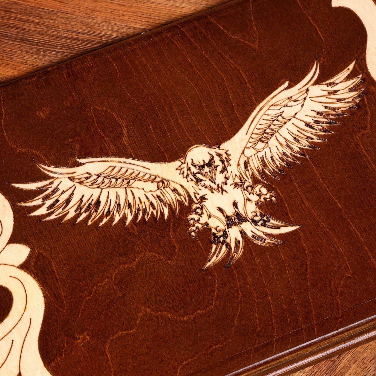 Нарды ручной работы "Летящий орёл", 60х30 см, с шахматным полем, массив ореха, Армения