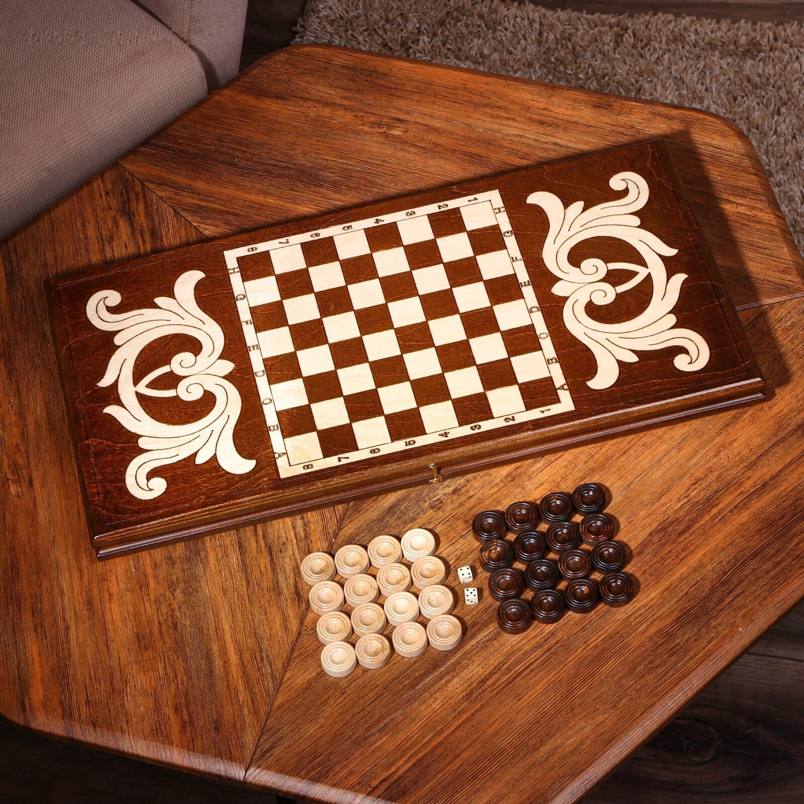 Нарды ручной работы "Тигр", 60х30 см, с шахматным полем, массив ореха, Армения