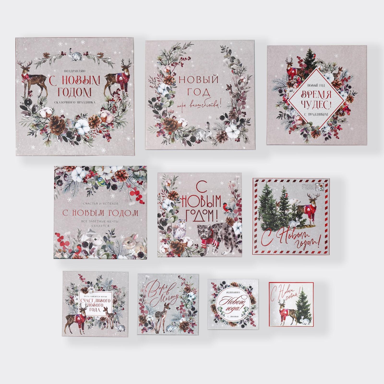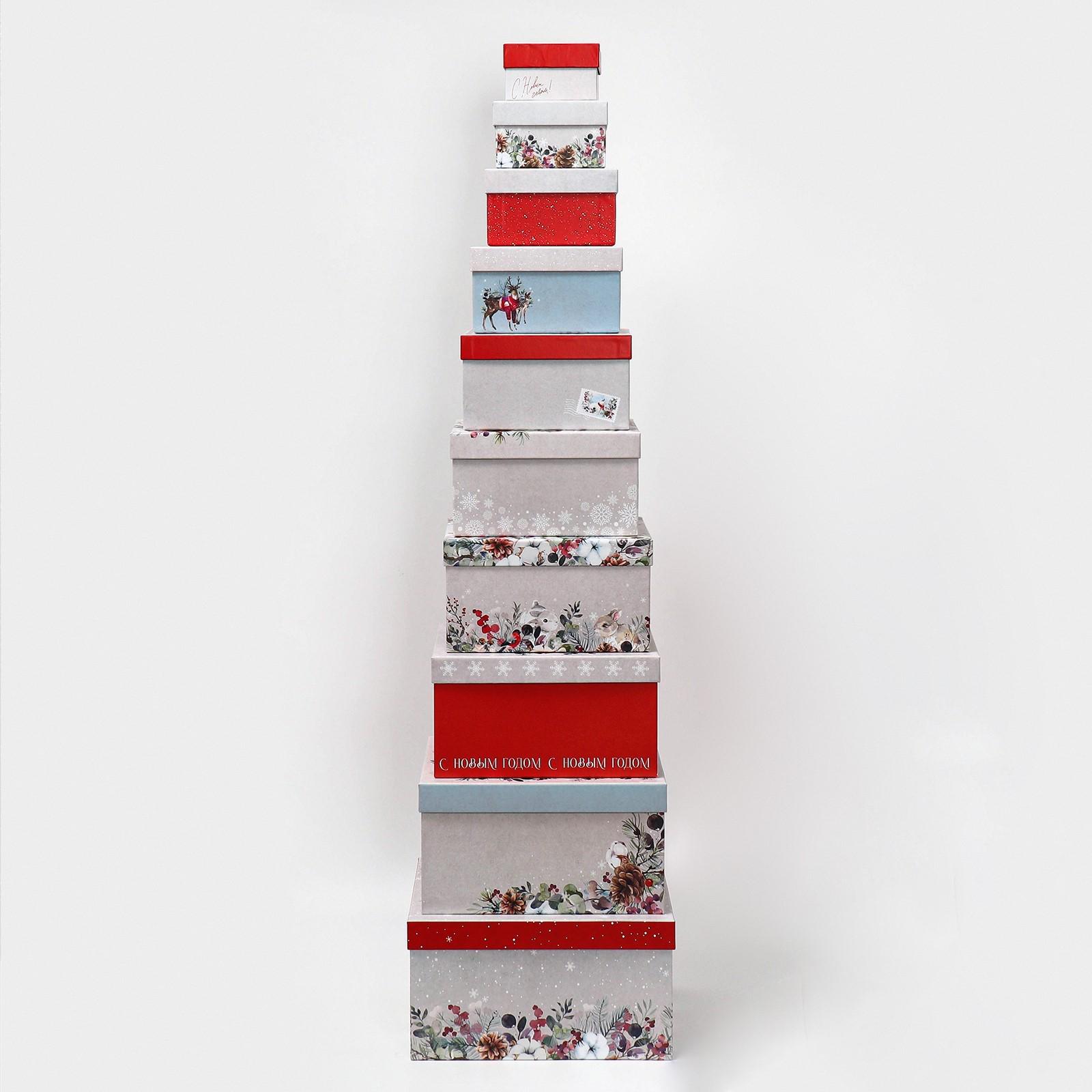 Набор подарочных коробок 10 в 1 «С Новым годом», 10.2 × 10.2 × 6‒28.2 × 28.2 × 15 см