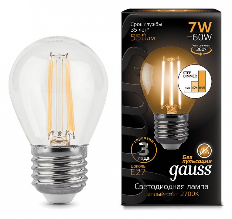 • Дополнительная информация Производитель Gauss. Дополнительные параметры - пошаговое диммирование: 15%, 50%, 100%. Светоотдача, лм/Вт - 64. Основной цвет - разноцветная