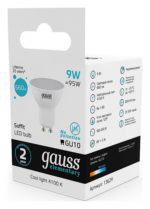 Лампа светодиодная Gauss Elementary GU10 11Вт 6500K 13631