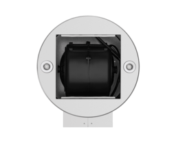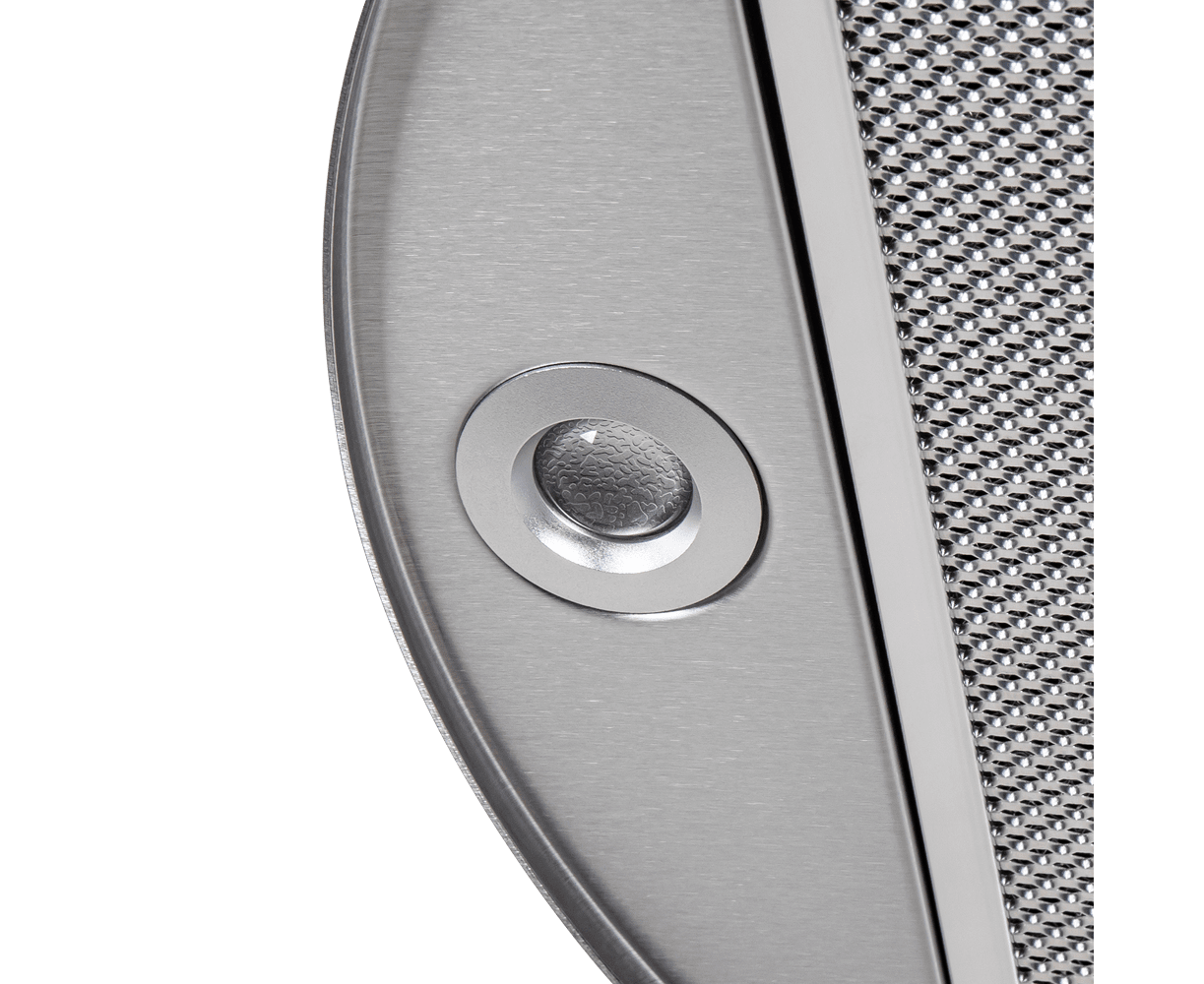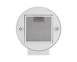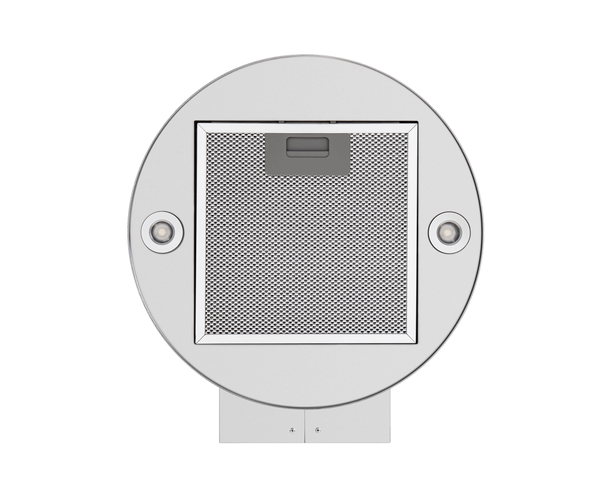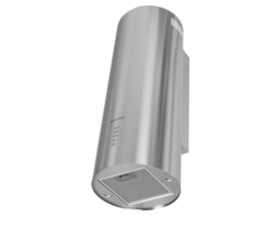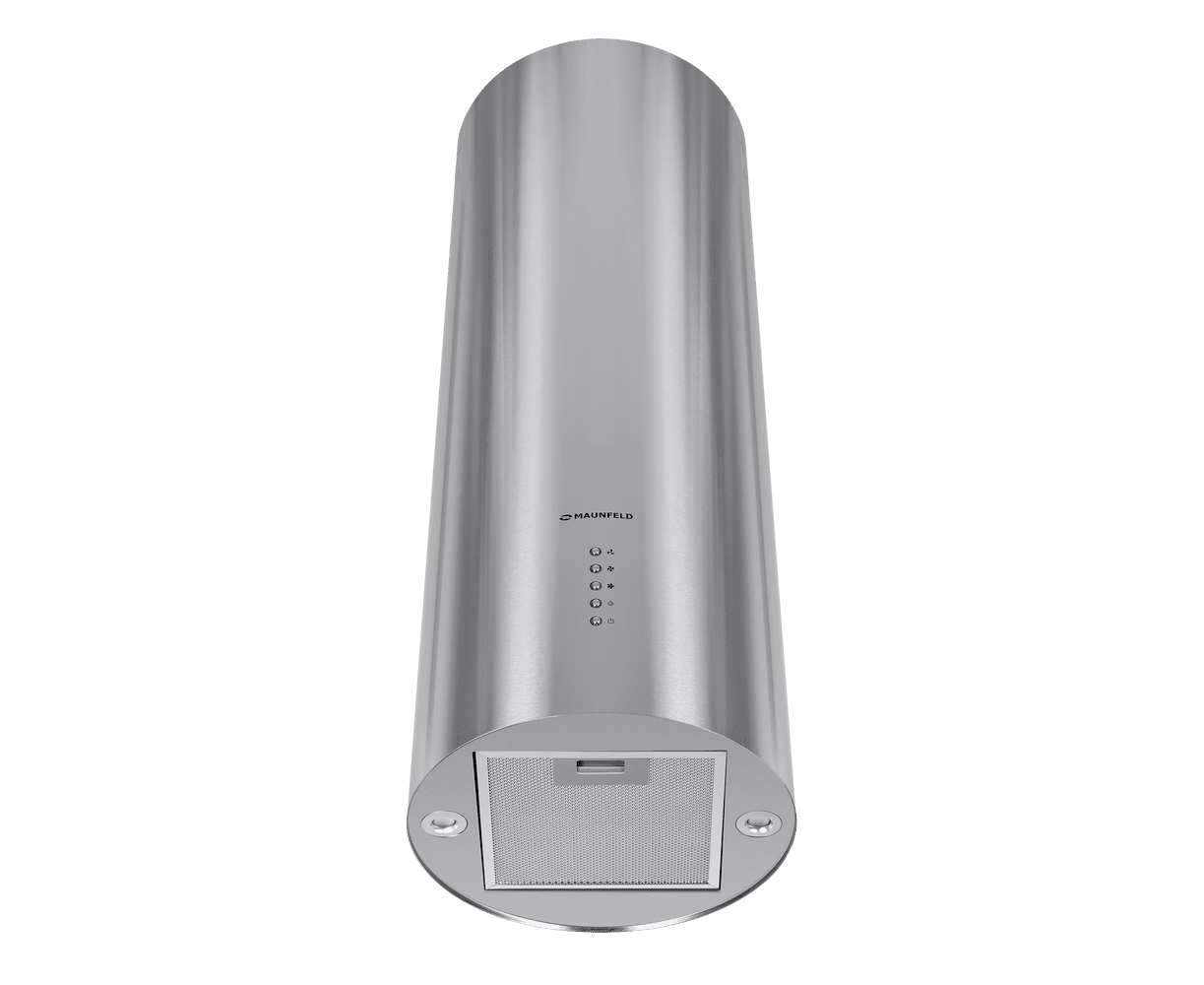 Корпус цилиндрической формы, выполненный из нержавеющей стали, устанавливается на стену над поверхностью плиты. Алюминиевый многослойный жироулавливающий фильтр находится в нижнем торце вытяжки.